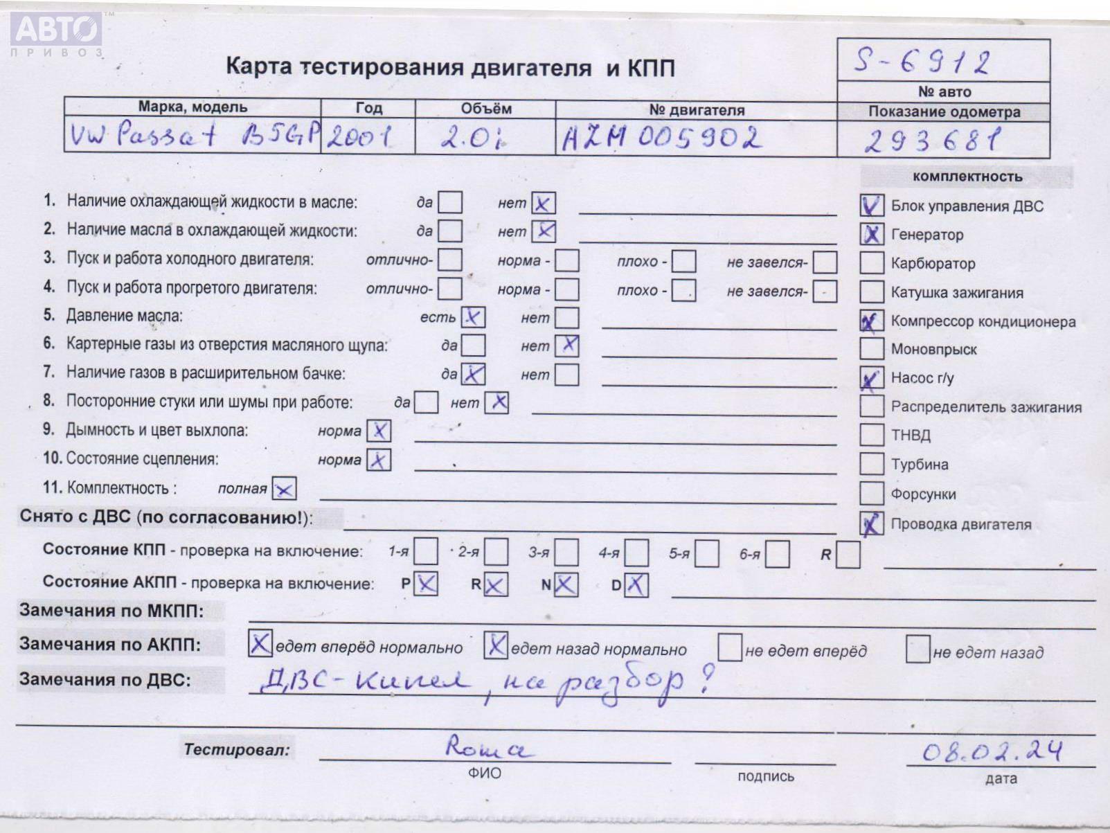 | Марка / Модель / Год: | Volkswagen Passat B5+ (GP) 2001 |