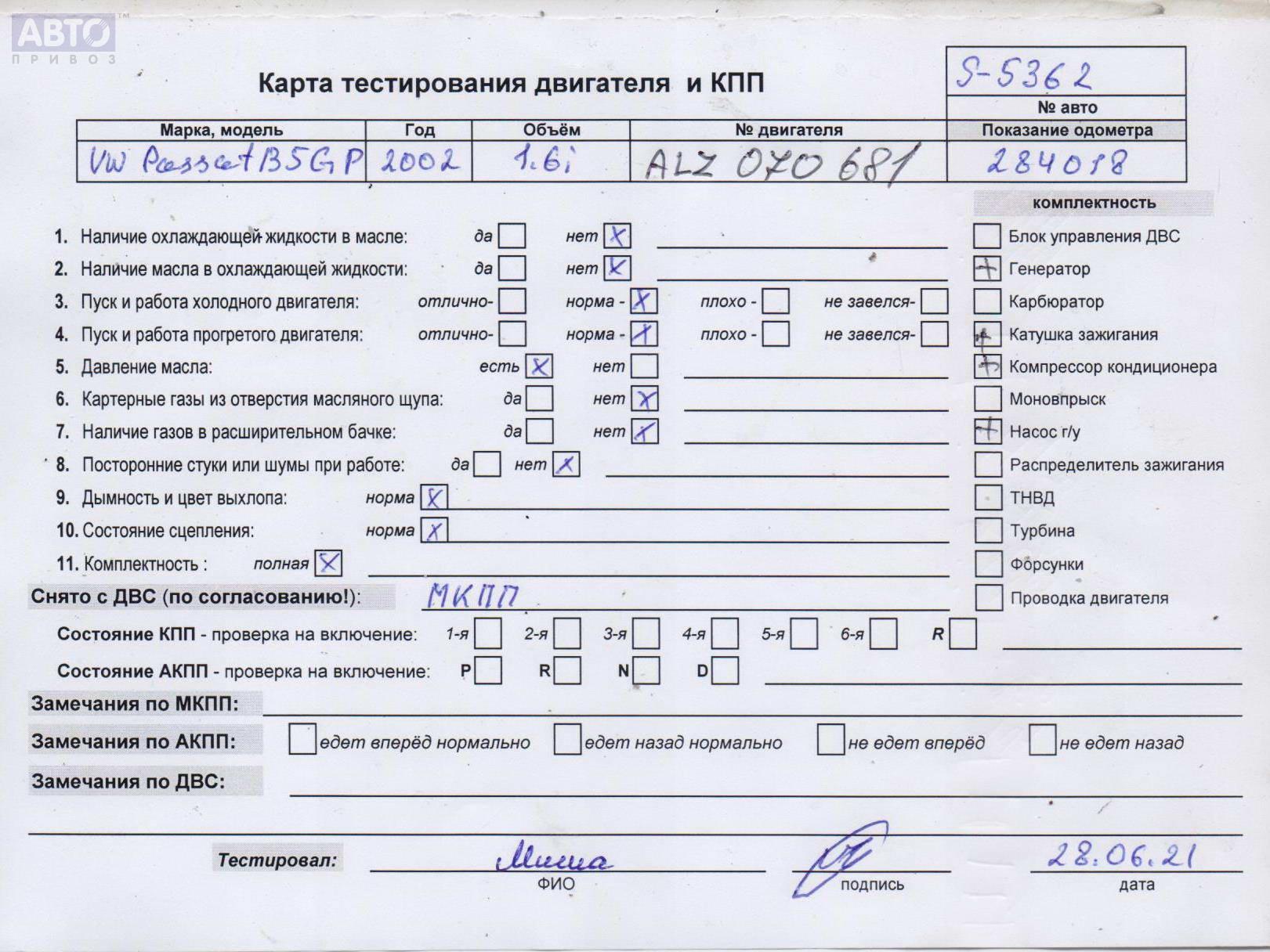 | Марка / Модель / Год: | Volkswagen Passat B5+ (GP) 2002 |