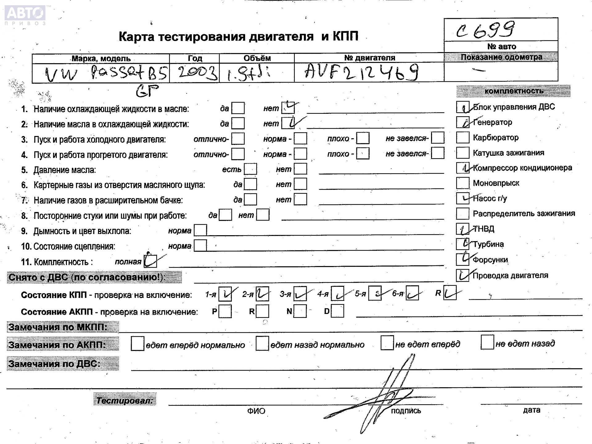 | Марка / Модель / Год: | Volkswagen Passat B5+ (GP) 2002 |