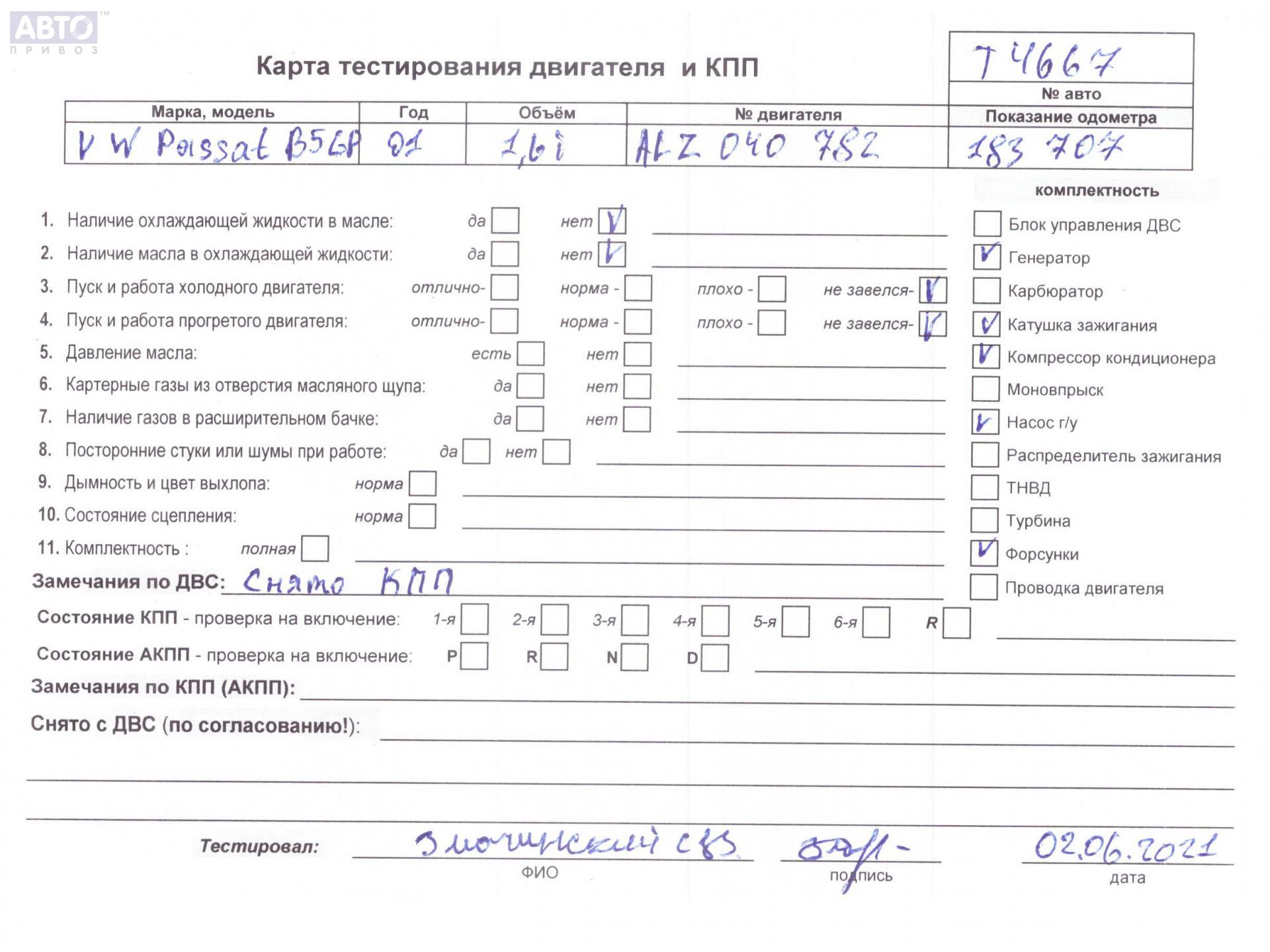 | Марка / Модель / Год: | Volkswagen Passat B5+ (GP) 2001 |