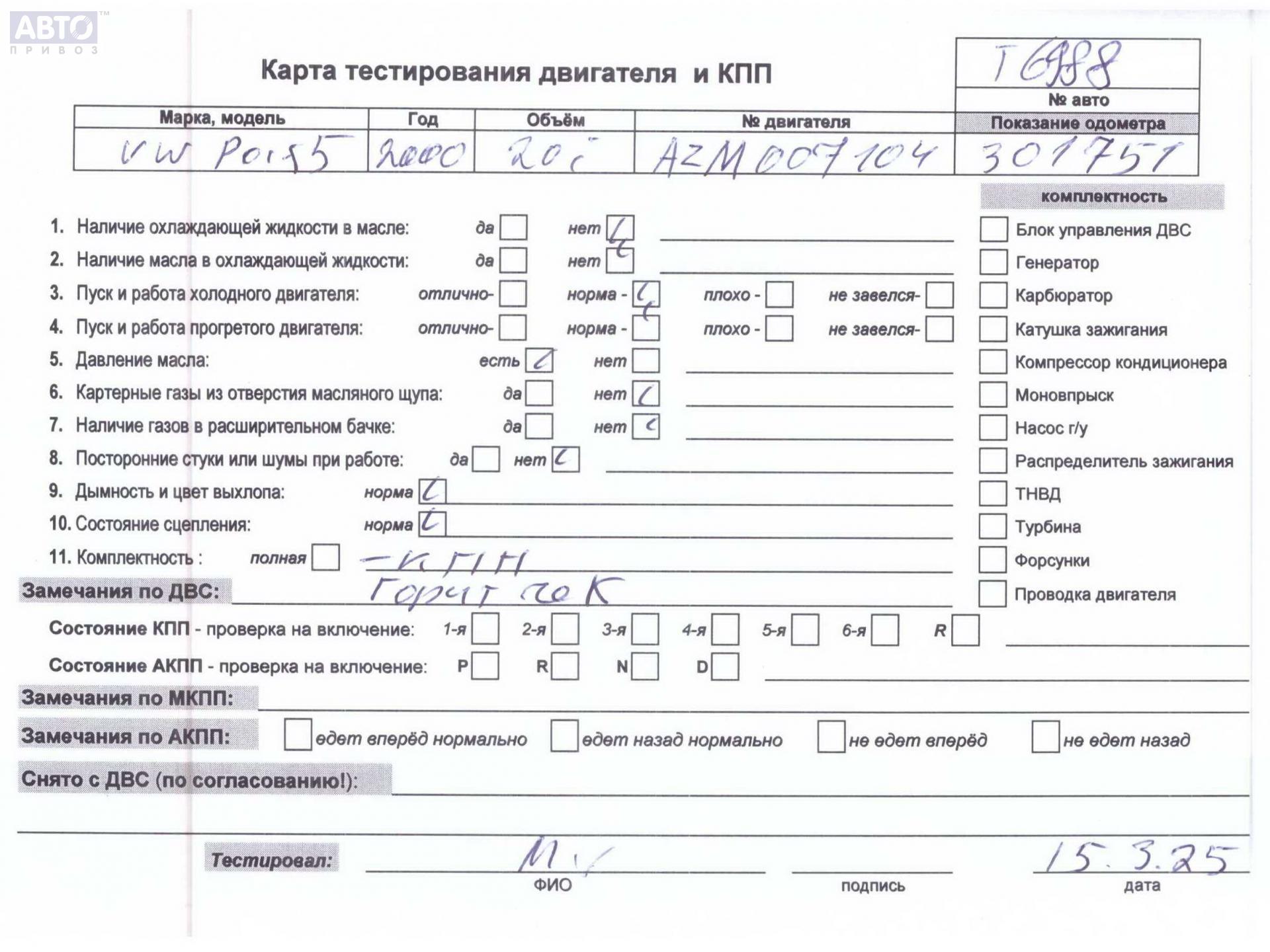 | Автомобиль / VIN: | T6988 WVWZZZ3BZ1E147105 |