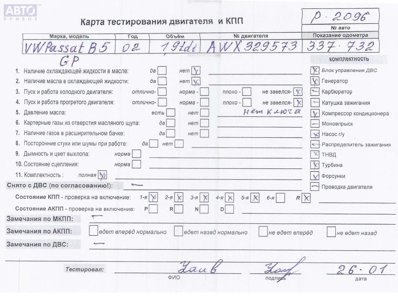 | Марка / Модель / Год: | Volkswagen Passat B5+ (GP) 2002 |