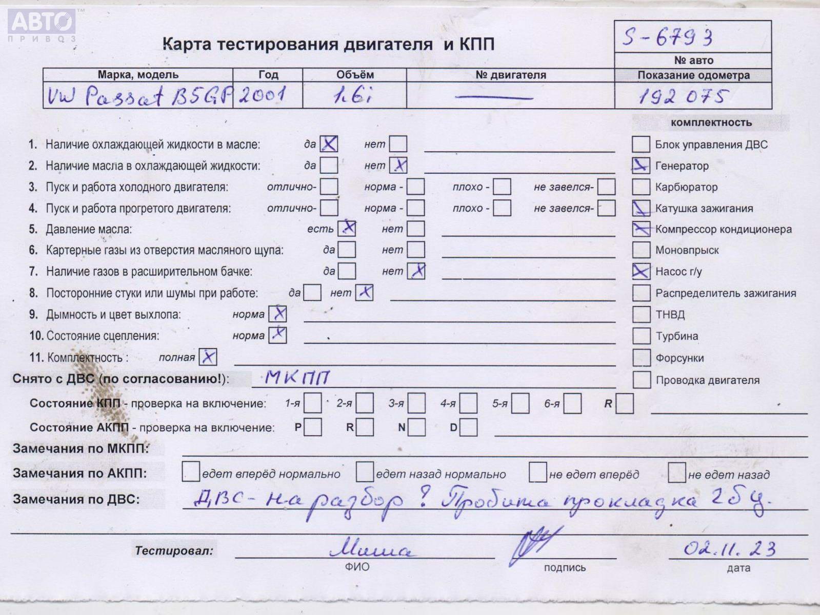 | Марка / Модель / Год: | Volkswagen Passat B5+ (GP) 2001 |