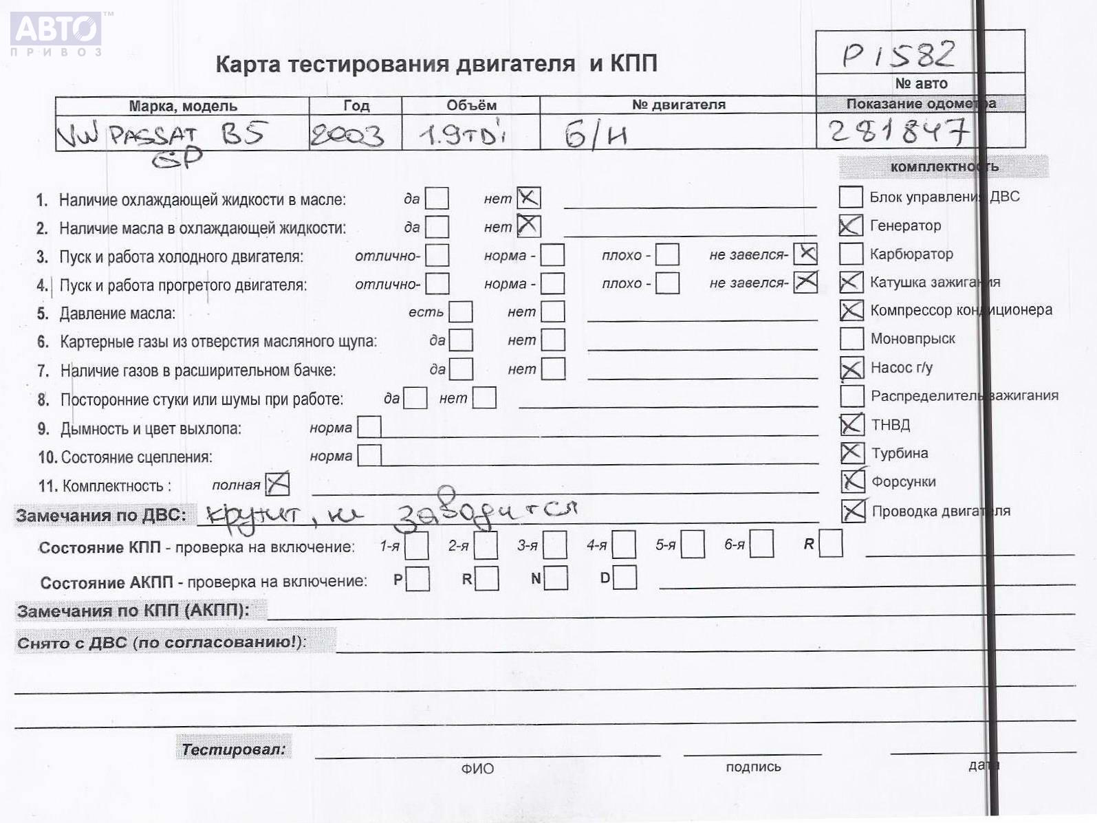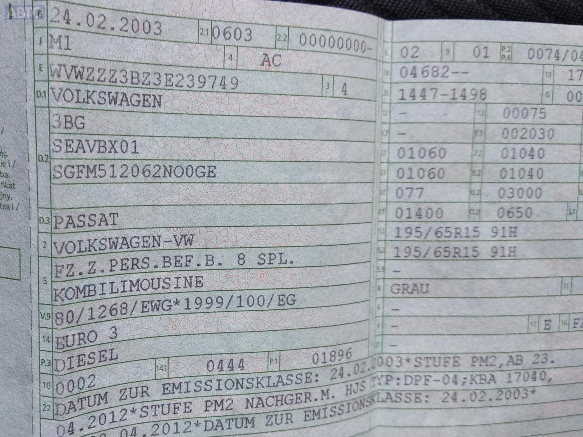 | Марка / Модель / Год: | Volkswagen Passat B5+ (GP) 2003 |