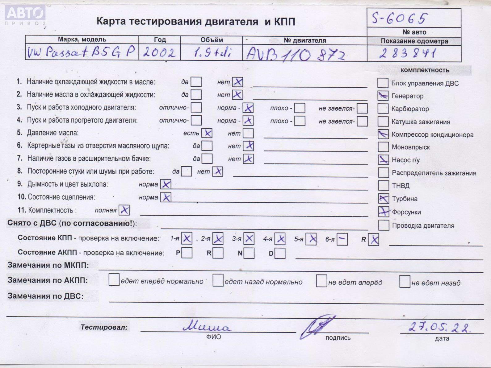| Марка / Модель / Год: | Volkswagen Passat B5+ (GP) 2002 |