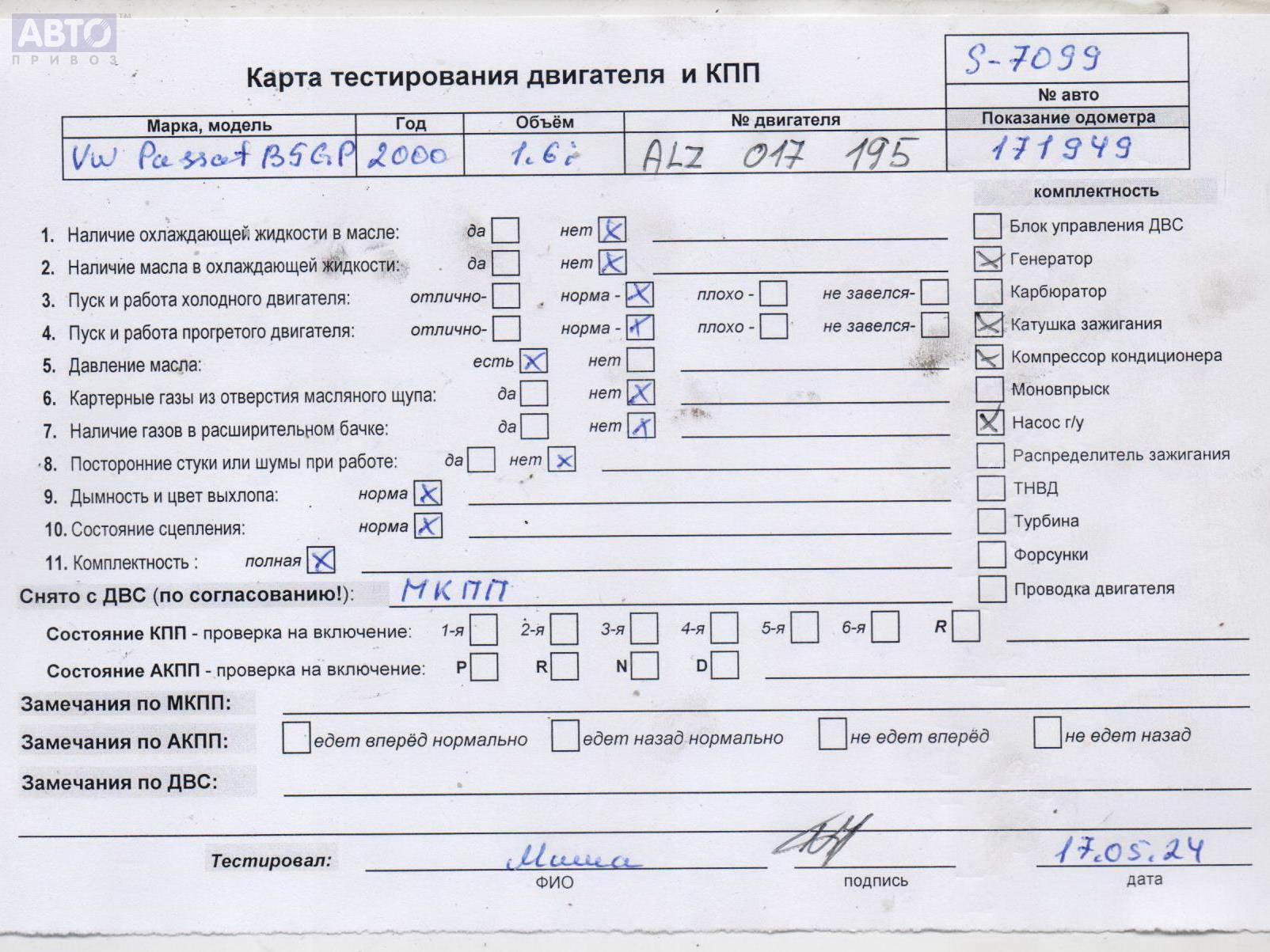 | Марка / Модель / Год: | Volkswagen Passat B5+ (GP) 2001 |