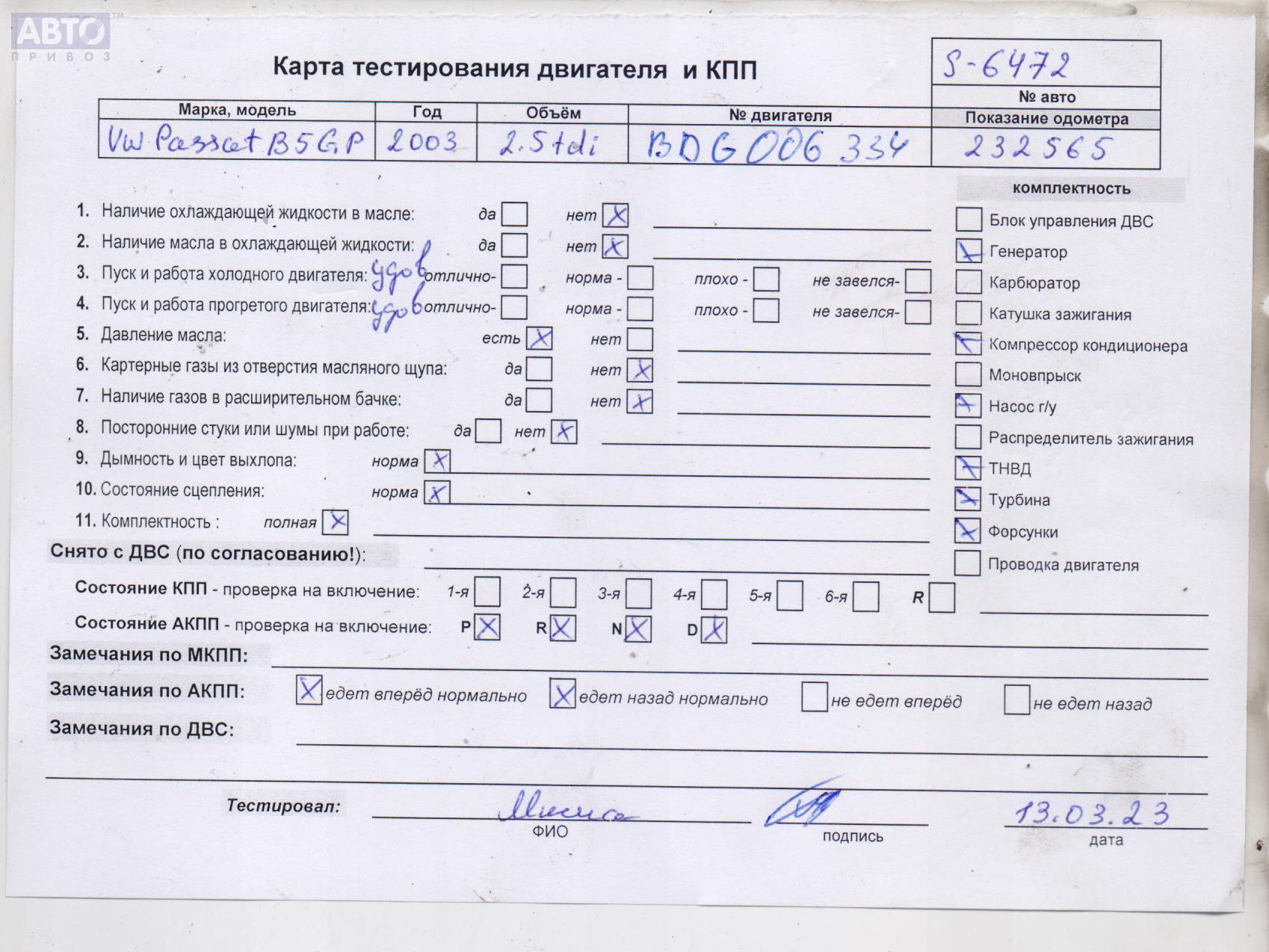 | Марка / Модель / Год: | Volkswagen Passat B5+ (GP) 2003 |