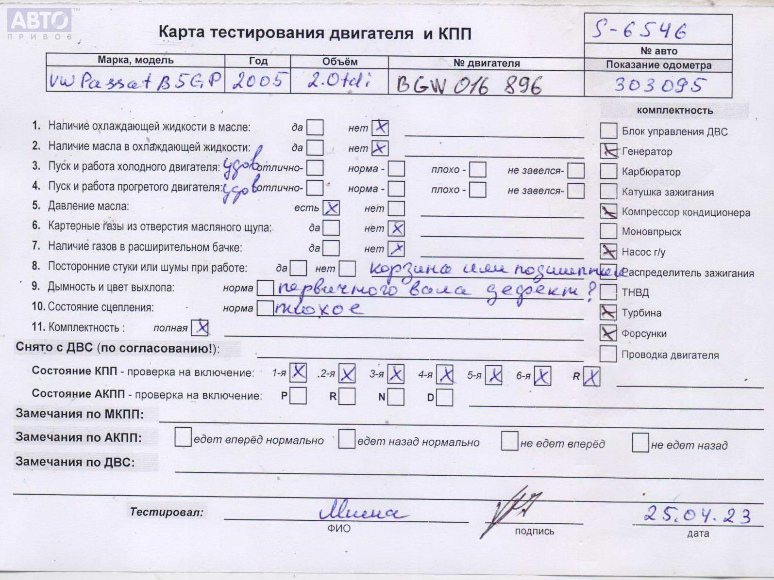 | Марка / Модель / Год: | Volkswagen Passat B5+ (GP) 2005 |