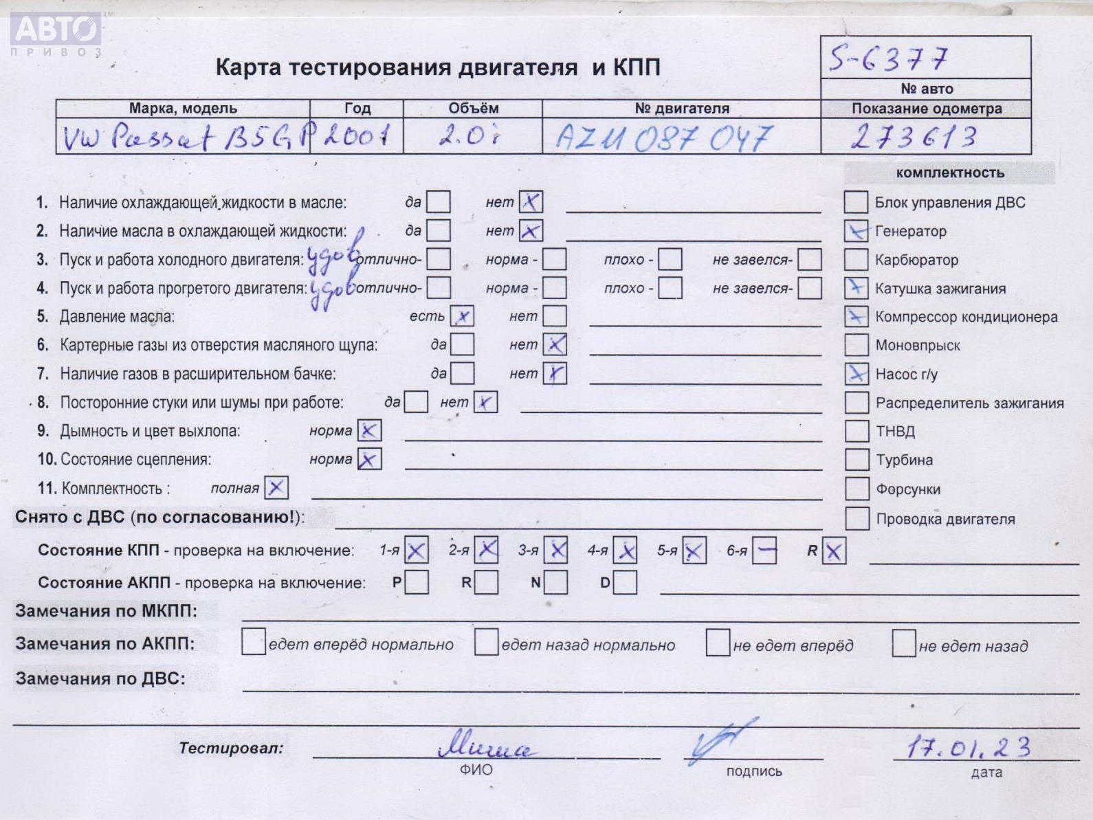 | Марка / Модель / Год: | Volkswagen Passat B5+ (GP) 2001 |