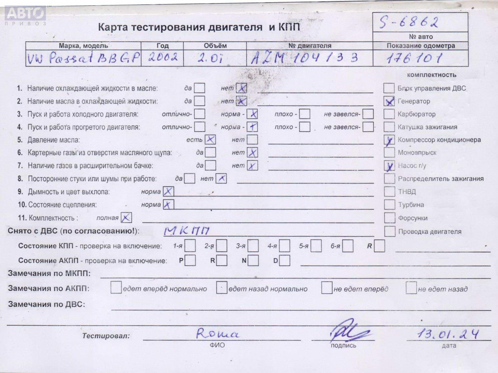| Автомобиль / VIN: | S6862 WVWZZZ3BZ3E216626 |