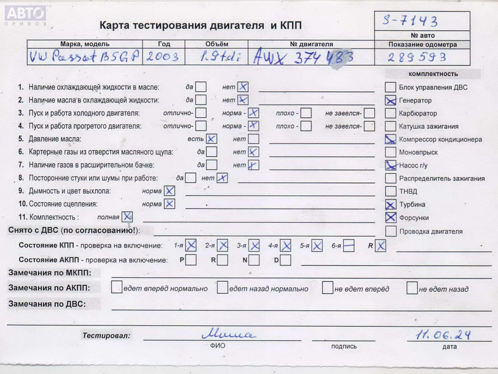 | Марка / Модель / Год: | Volkswagen Passat B5+ (GP) 2003 |