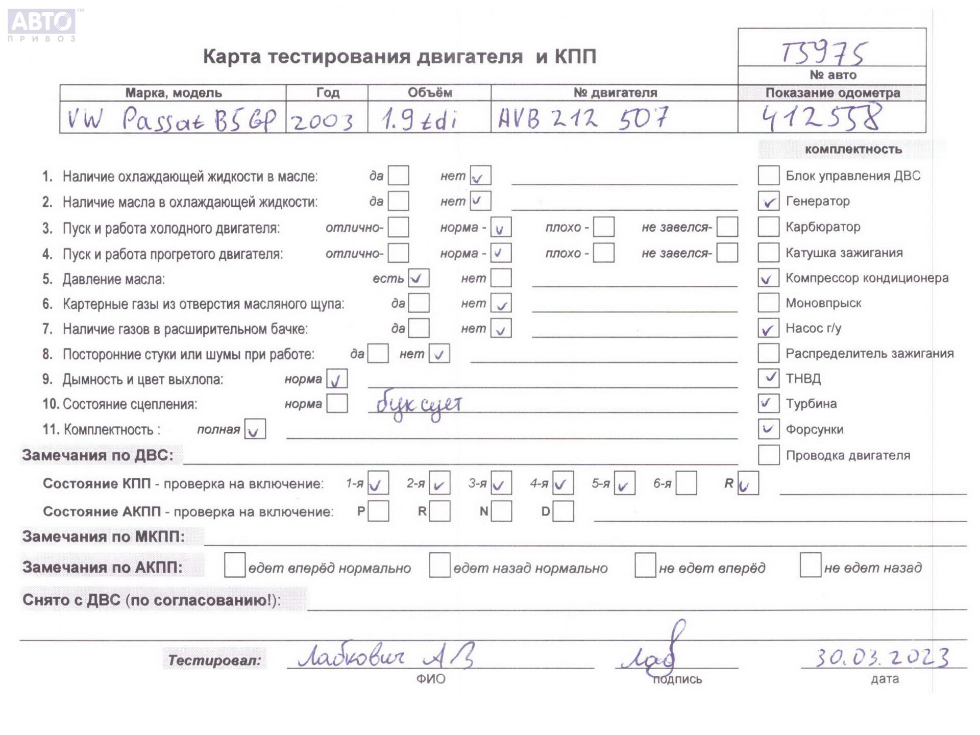 | Марка / Модель / Год: | Volkswagen Passat B5+ (GP) 2003 |