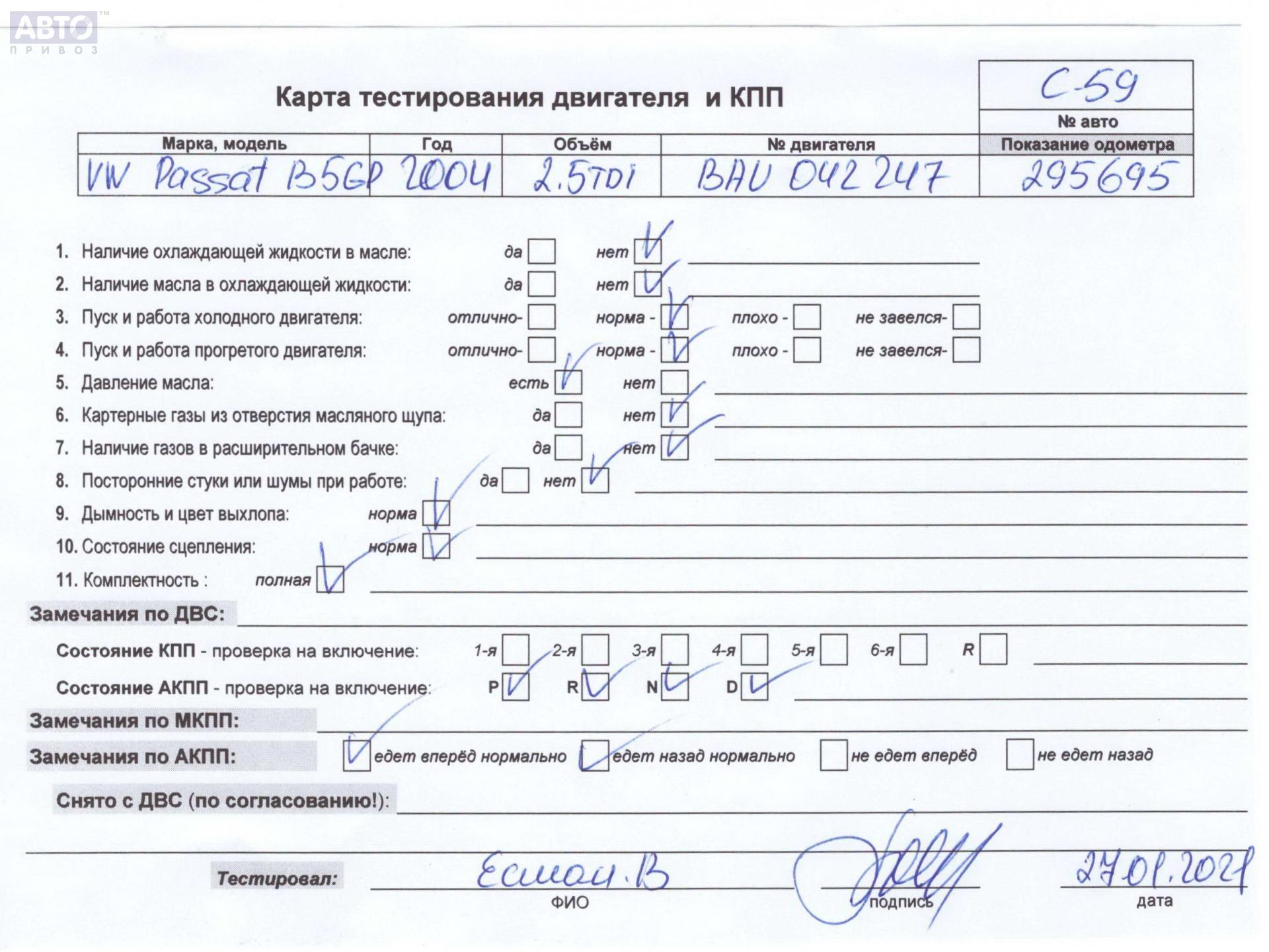| Марка / Модель / Год: | Volkswagen Passat B5+ (GP) 2004 |