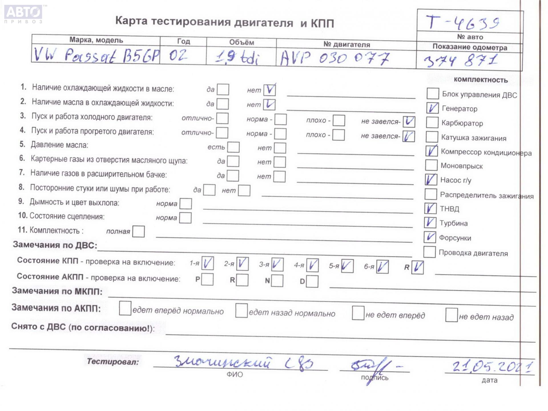 | Марка / Модель / Год: | Volkswagen Passat B5+ (GP) 2001 |
