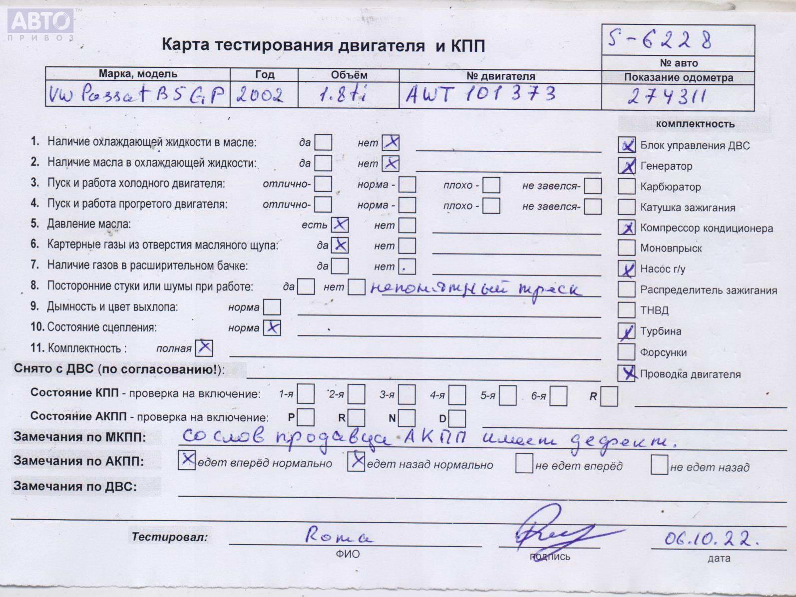| Марка / Модель / Год: | Volkswagen Passat B5+ (GP) 2002 |