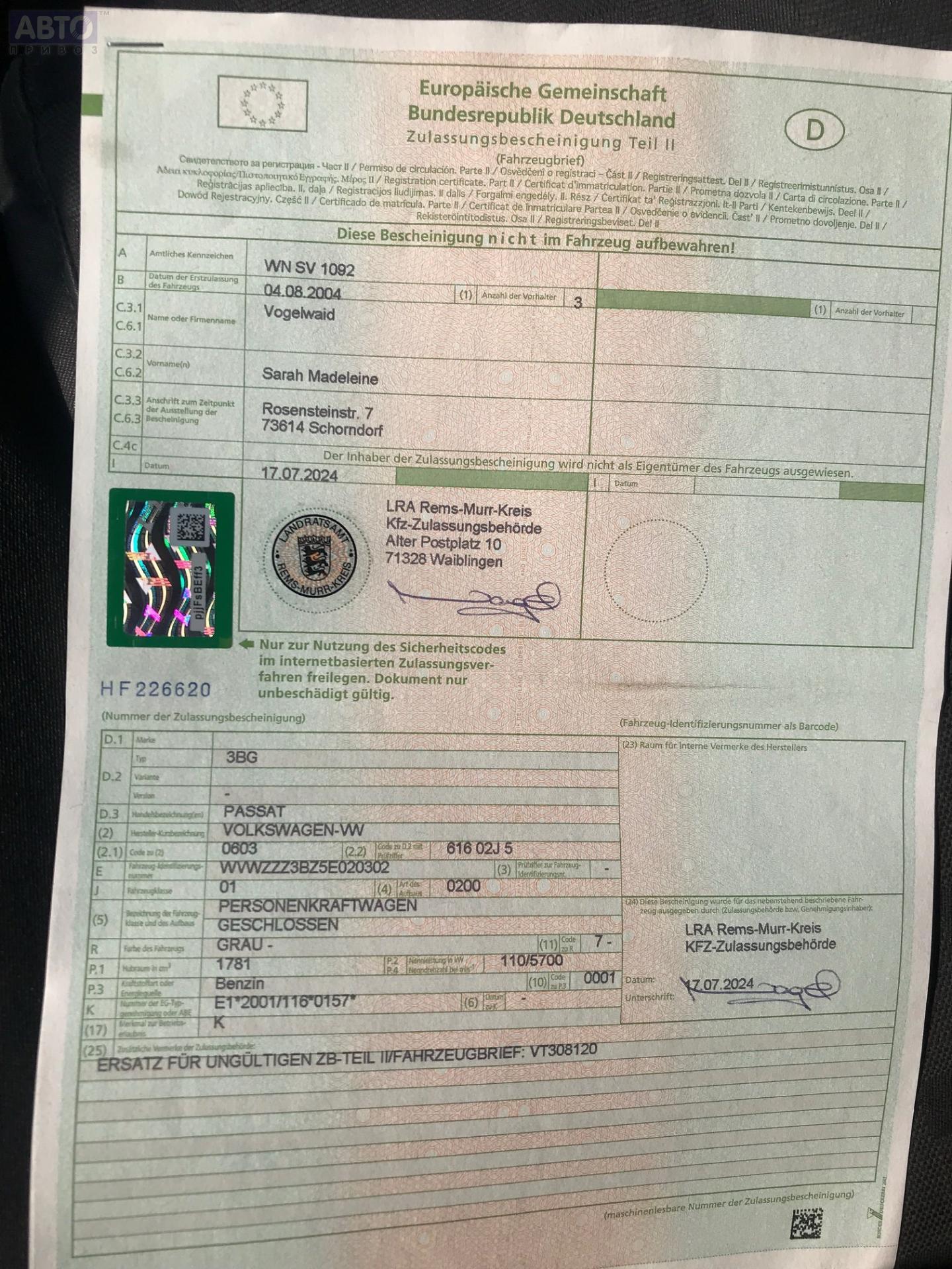 | Марка / Модель / Год: | Volkswagen Passat B5+ (GP) 2004 |