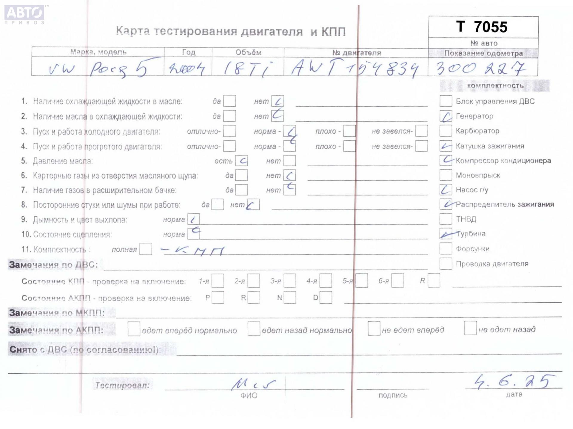 | Автомобиль / VIN: | T7055 WVWZZZ3BZ5E020302 |