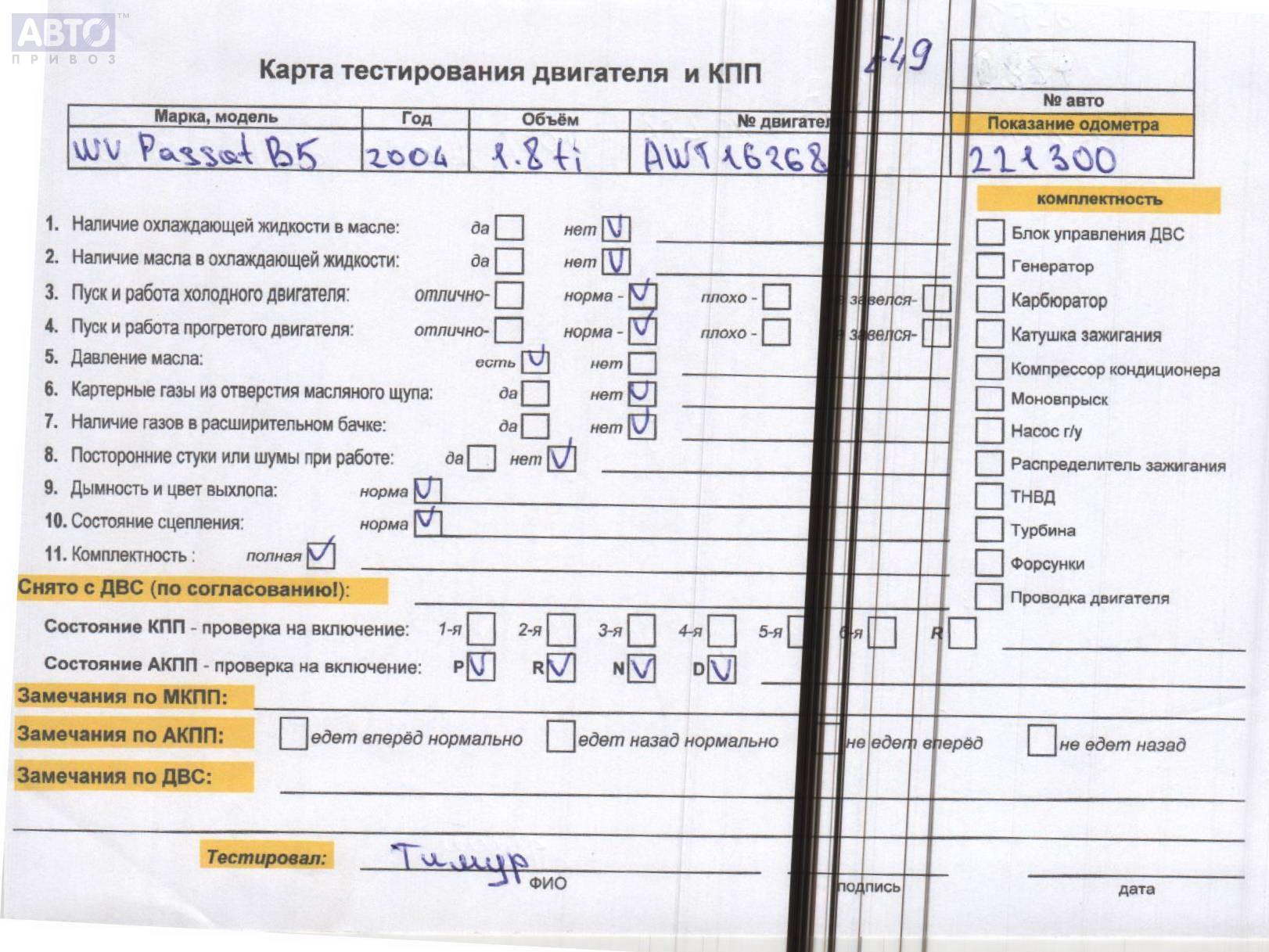 | Марка / Модель / Год: | Volkswagen Passat B5+ (GP) 2004 |
