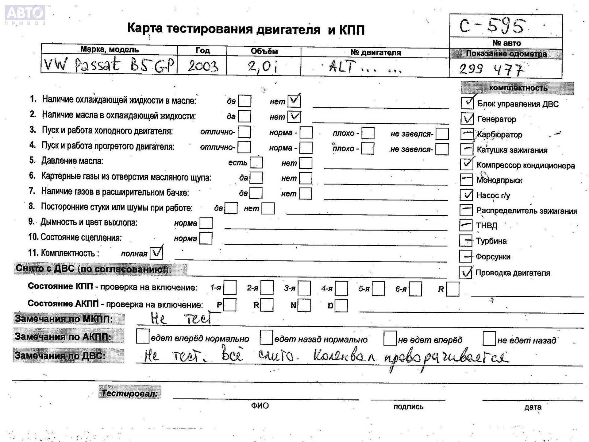 | Марка / Модель / Год: | Volkswagen Passat B5+ (GP) 2003 |