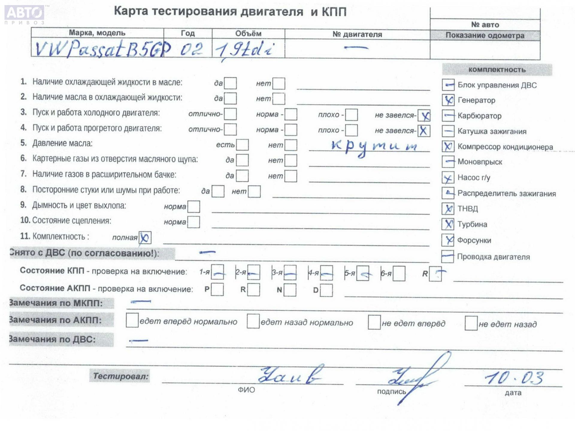 | Марка / Модель / Год: | Volkswagen Passat B5+ (GP) 2001 |