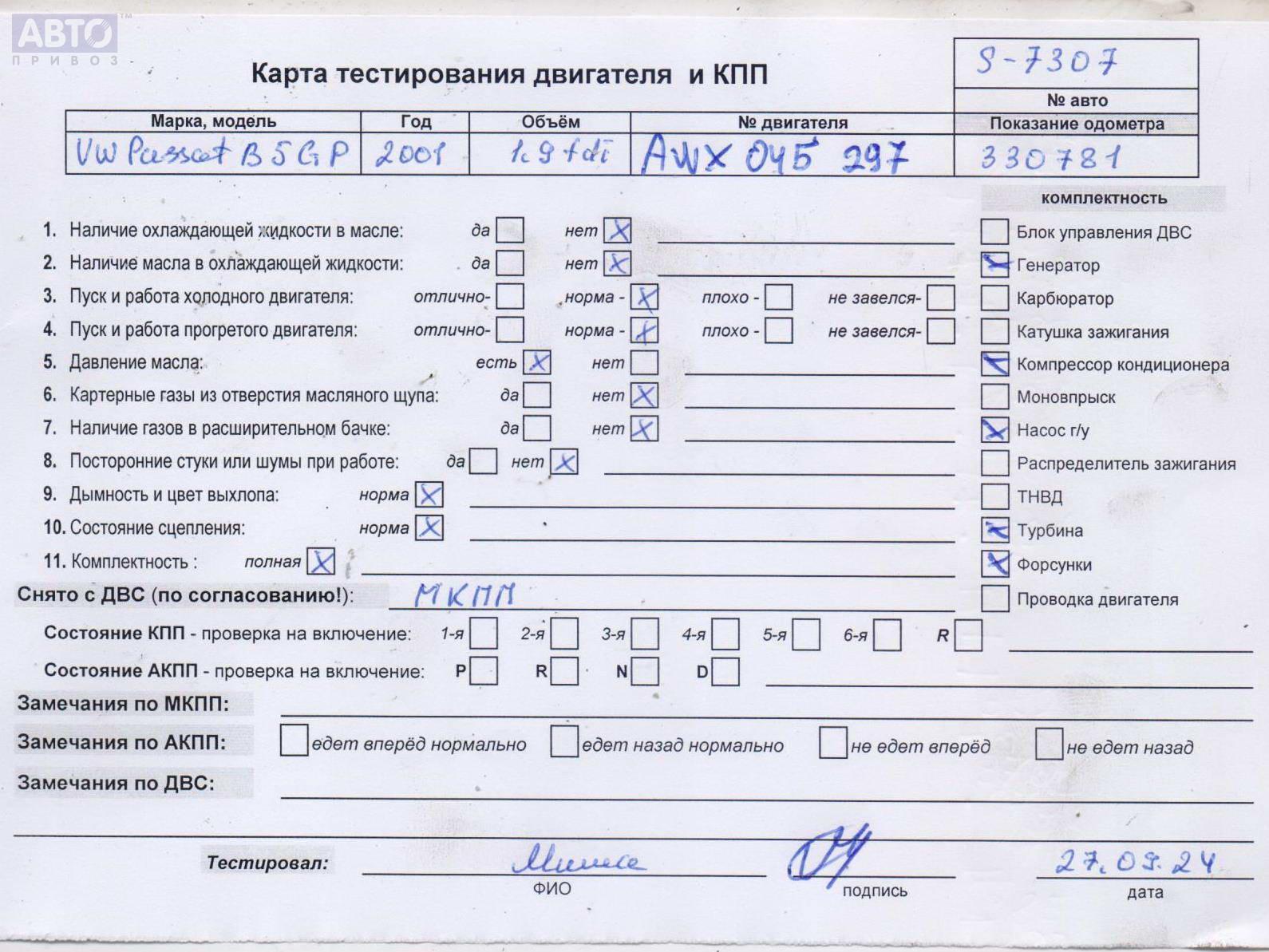 | Марка / Модель / Год: | Volkswagen Passat B5+ (GP) 2001 |