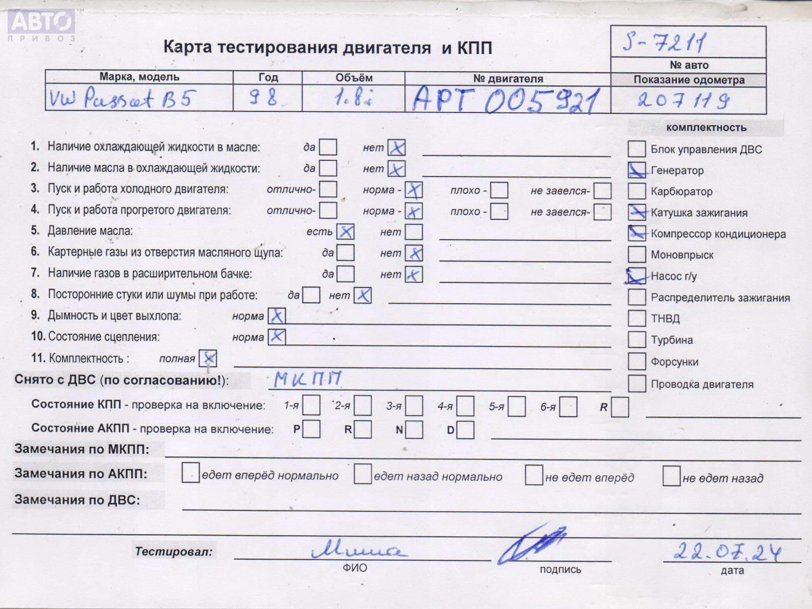 | Марка / Модель / Год: | Volkswagen Passat B5 1998 |