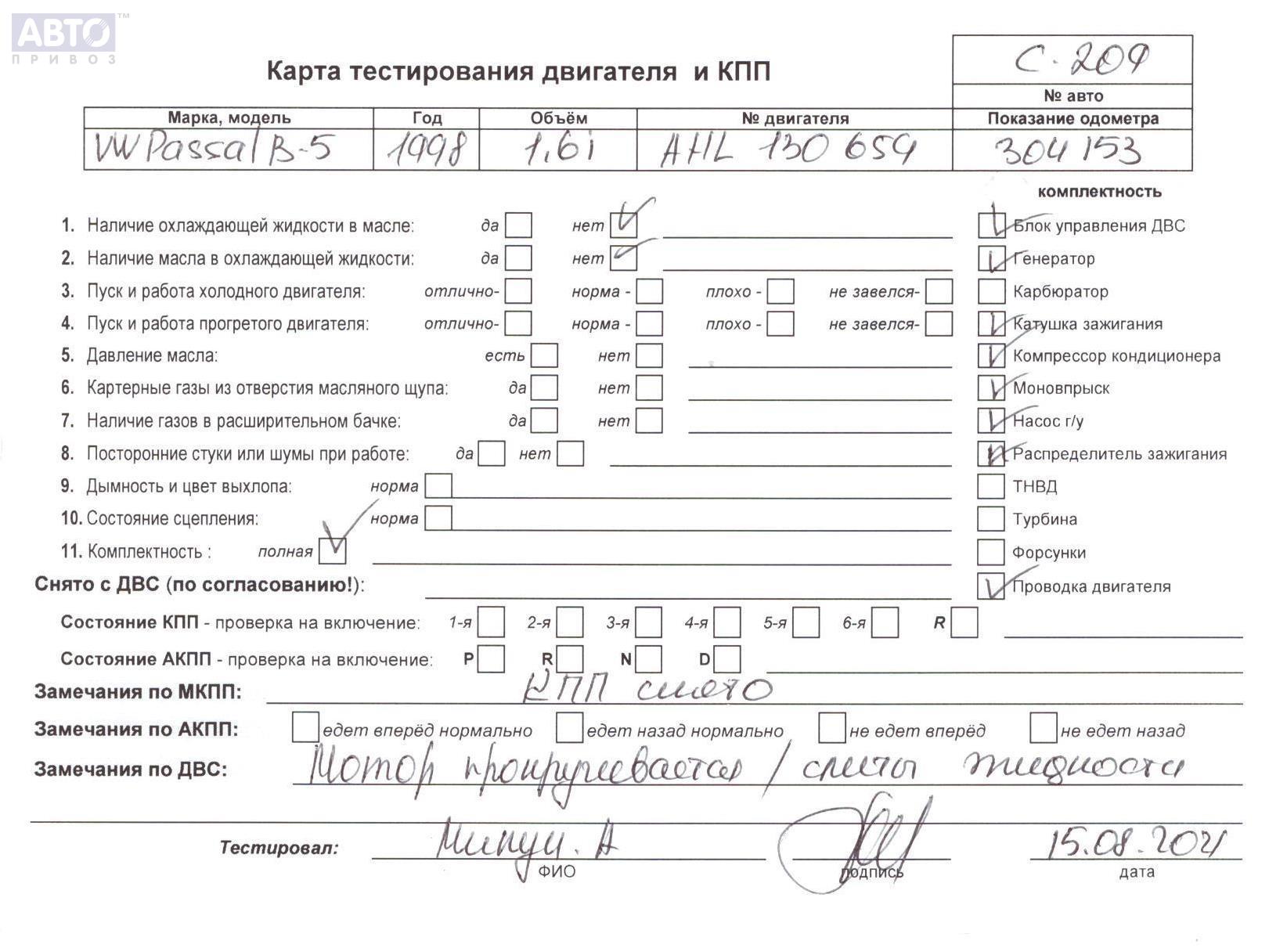 | Марка / Модель / Год: | Volkswagen Passat B5 1998 |