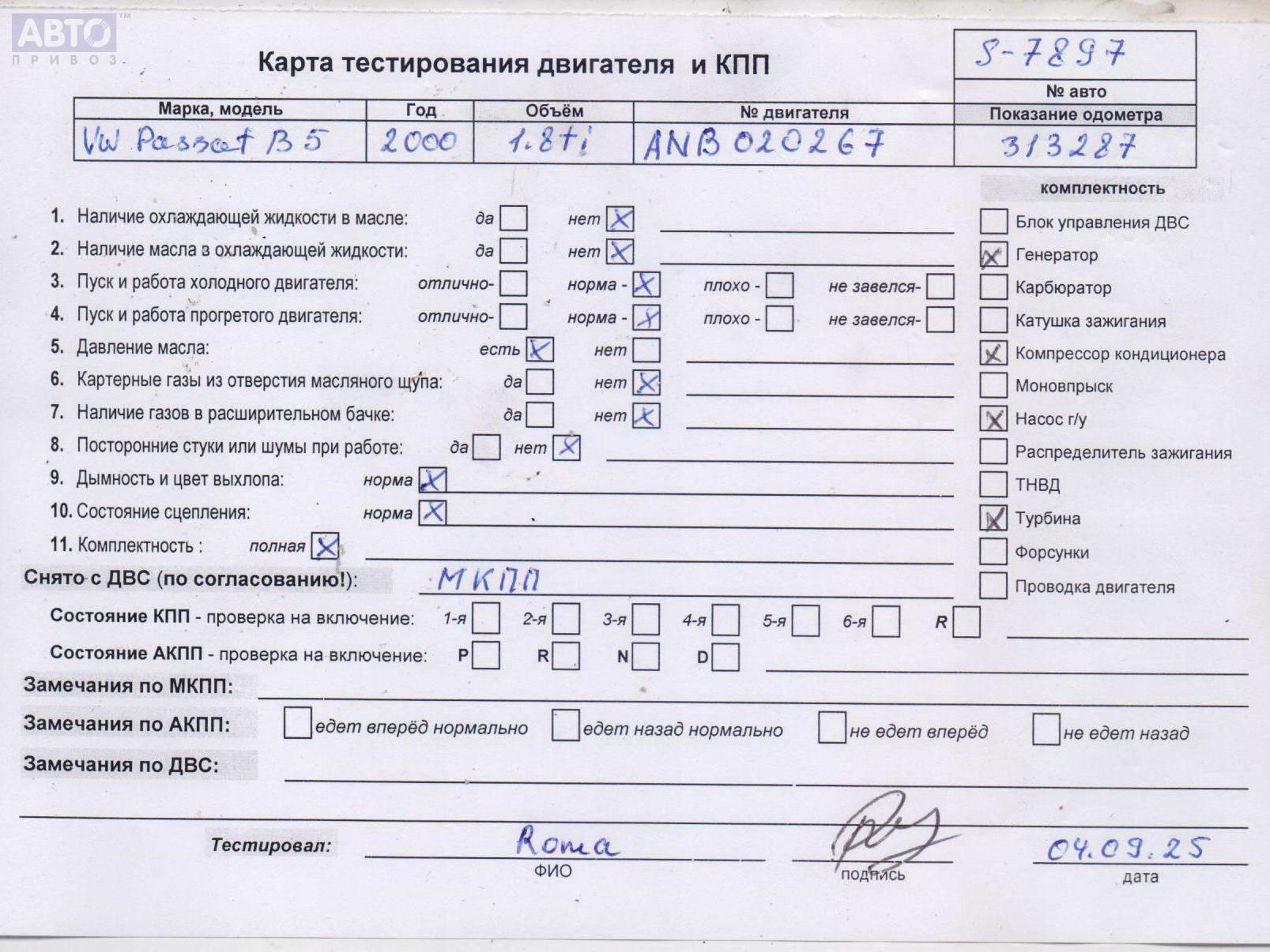| Марка / Модель / Год: | Volkswagen Passat B5 2000 |