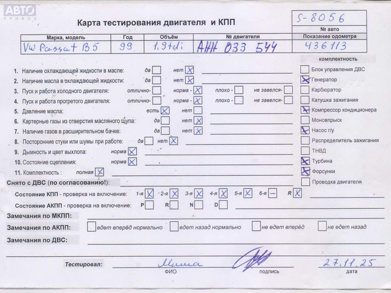 | Марка / Модель / Год: | Volkswagen Passat B5 1999 |
