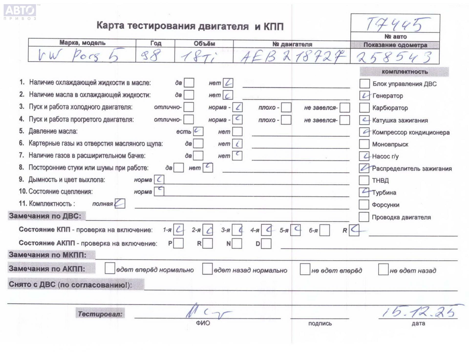 | Марка / Модель / Год: | Volkswagen Passat B5 1998 |