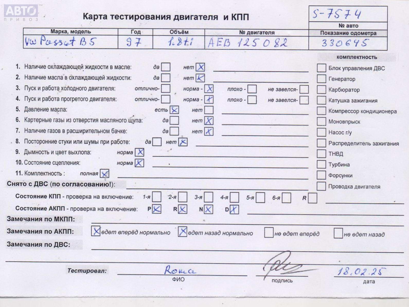 | Марка / Модель / Год: | Volkswagen Passat B5 1997 |