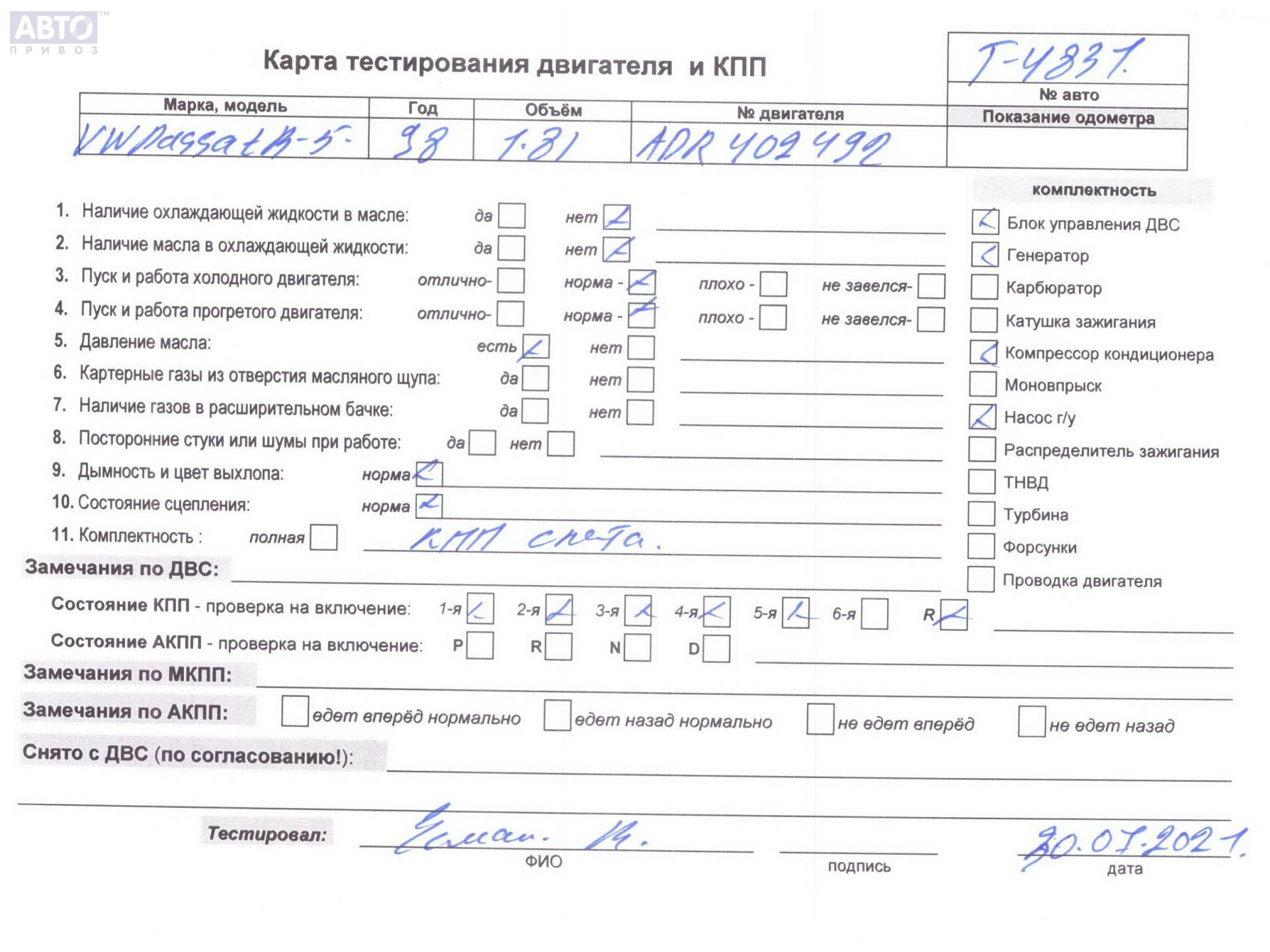 | Марка / Модель / Год: | Volkswagen Passat B5 1998 |