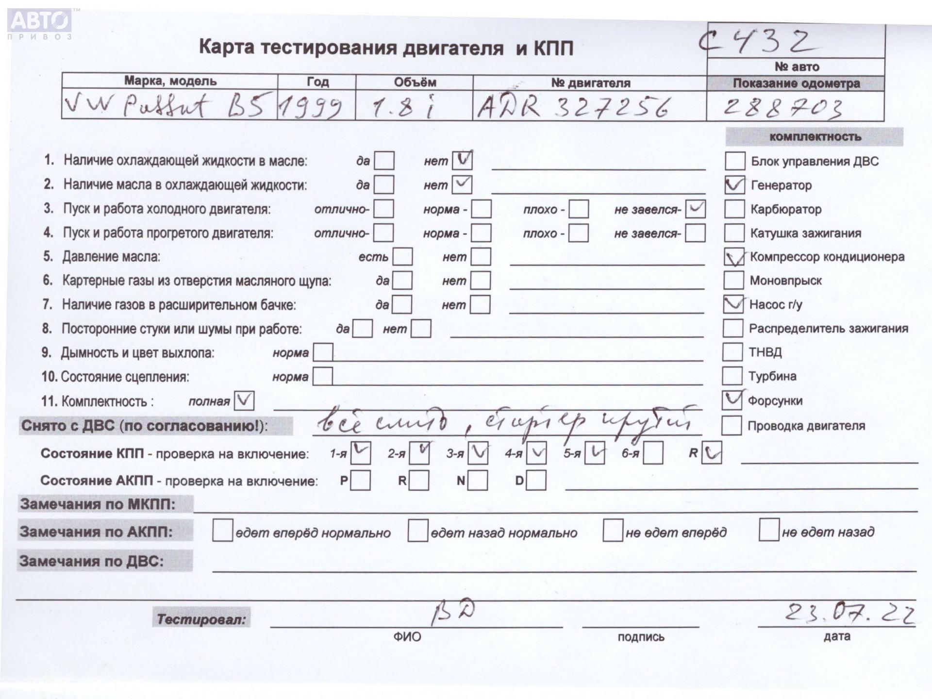 | Марка / Модель / Год: | Volkswagen Passat B5 1997 |