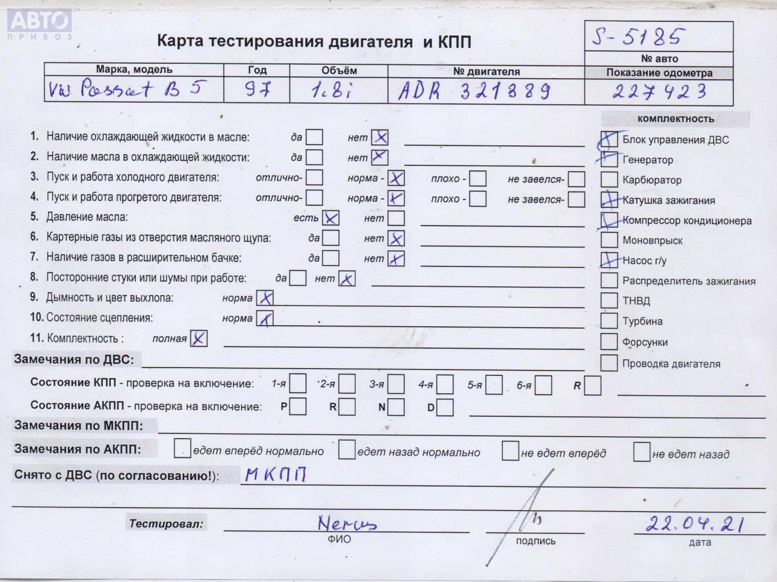 | Марка / Модель / Год: | Volkswagen Passat B5 1997 |