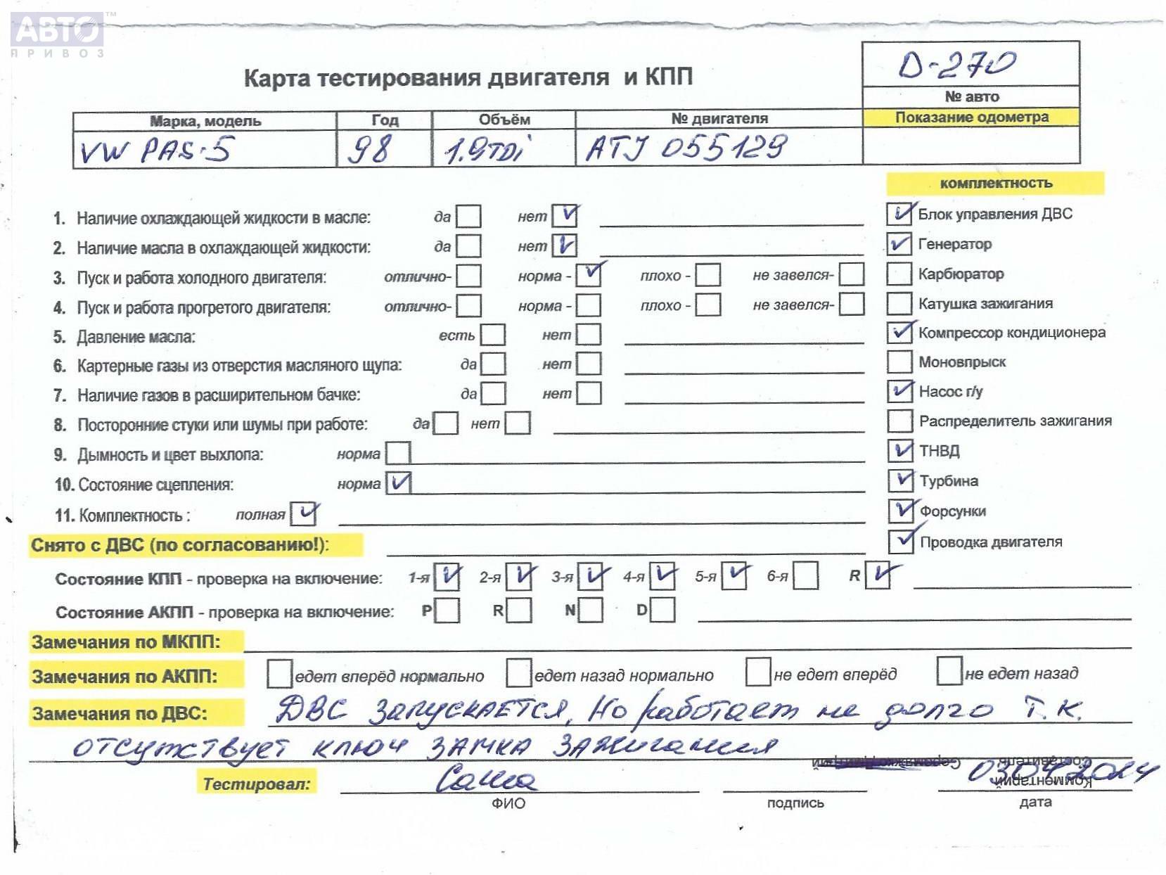 | Автомобиль / VIN: | D0270 WVWZZZ3BZYP441723 |