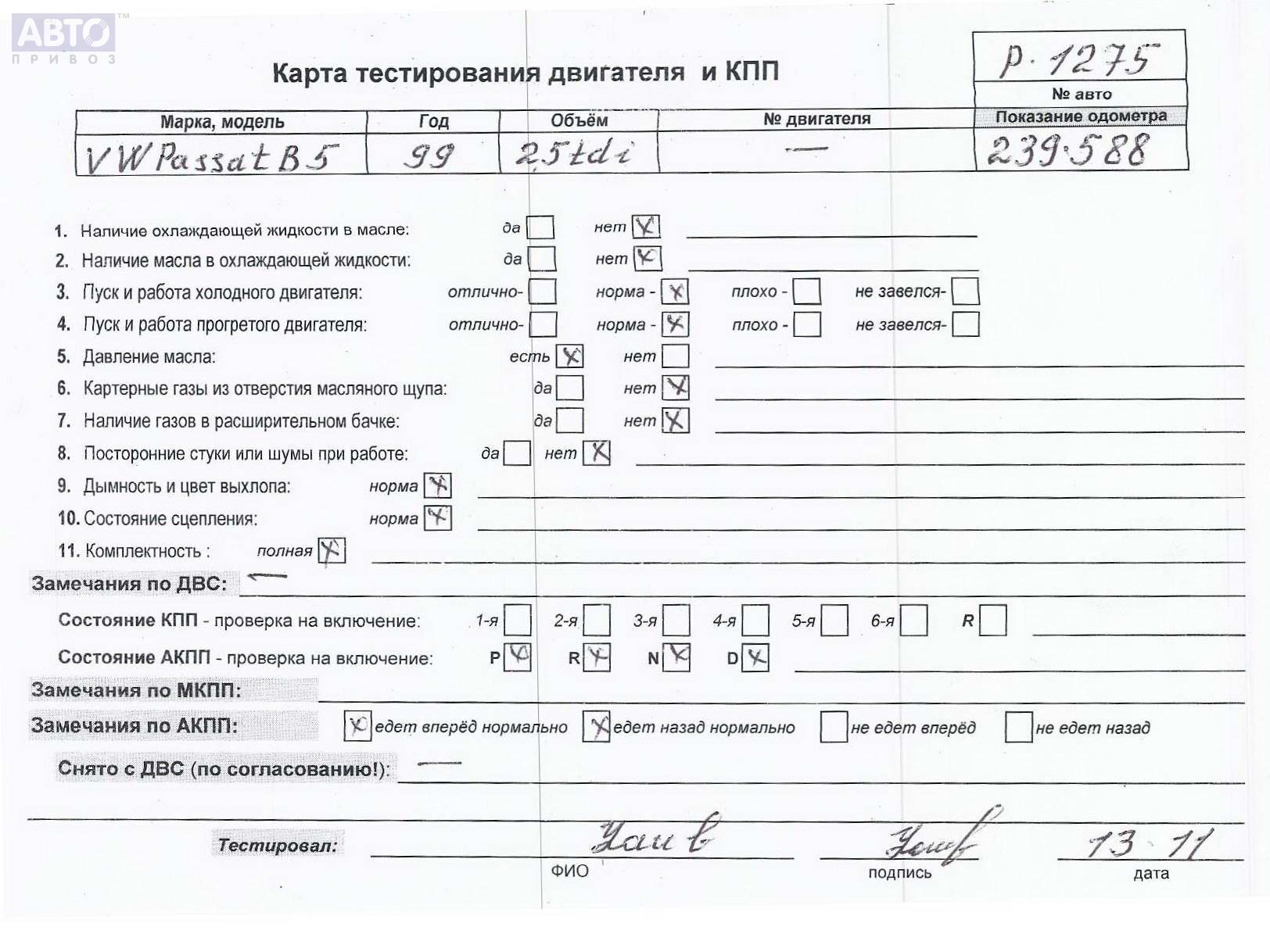 | Марка / Модель / Год: | Volkswagen Passat B5 1999 |