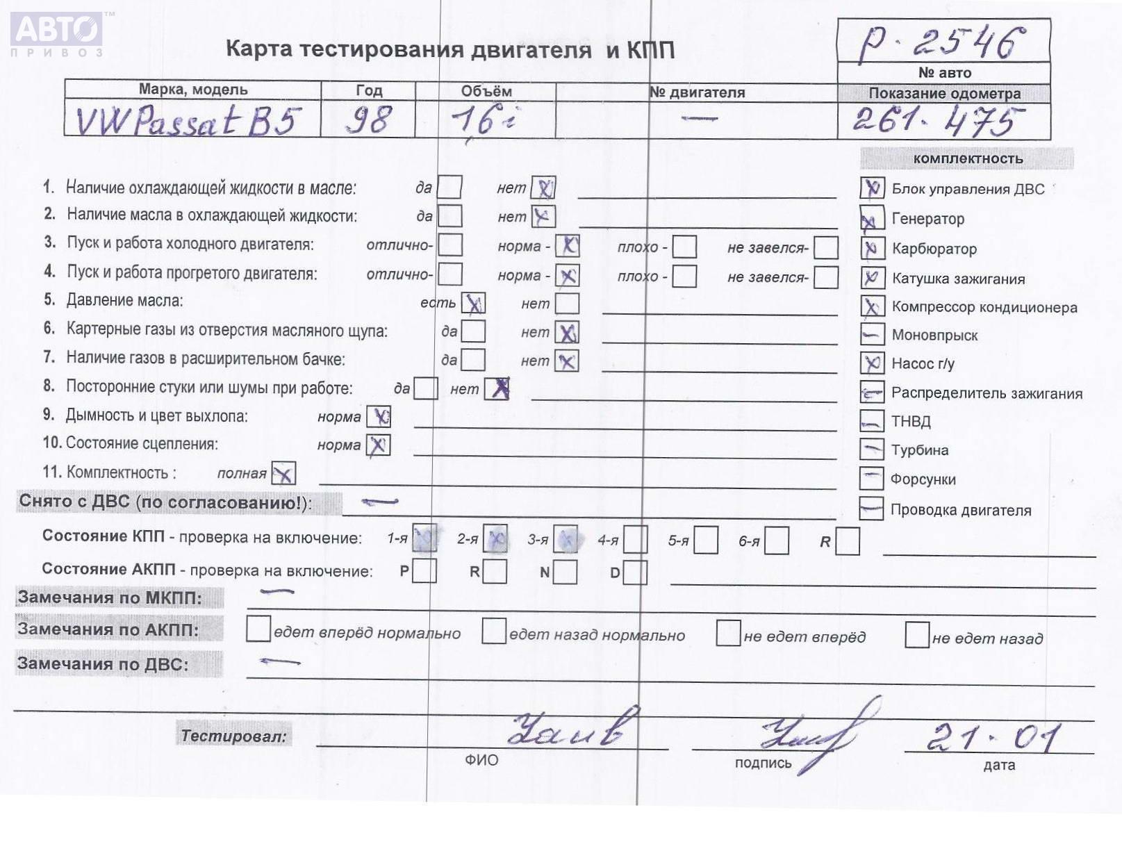 | Марка / Модель / Год: | Volkswagen Passat B5 1998 |