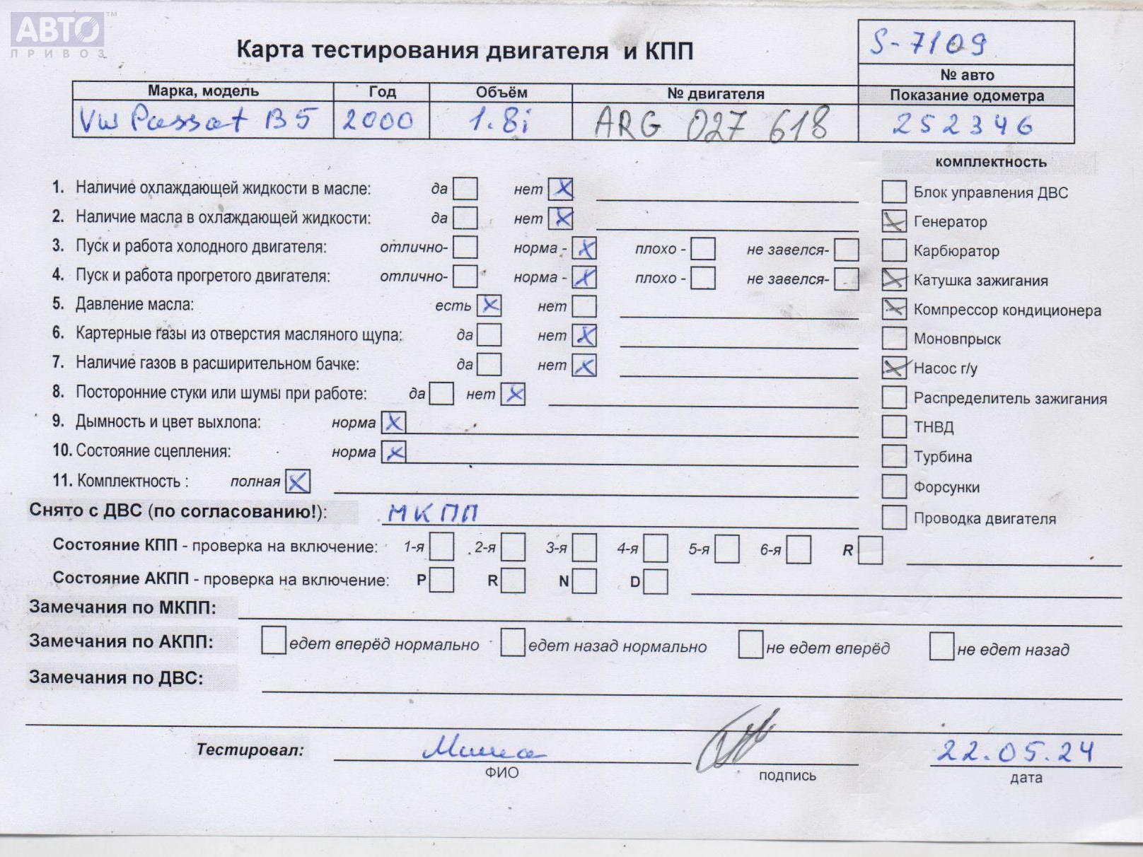 | Марка / Модель / Год: | Volkswagen Passat B5 2000 |