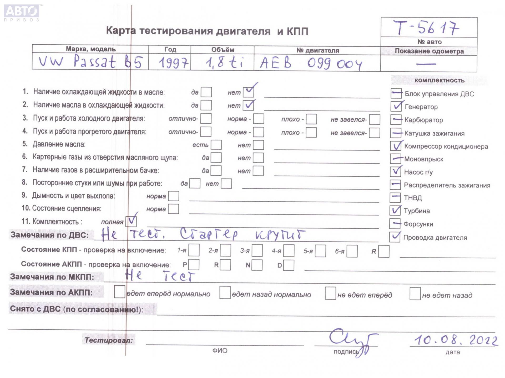 | Марка / Модель / Год: | Volkswagen Passat B5 1997 |