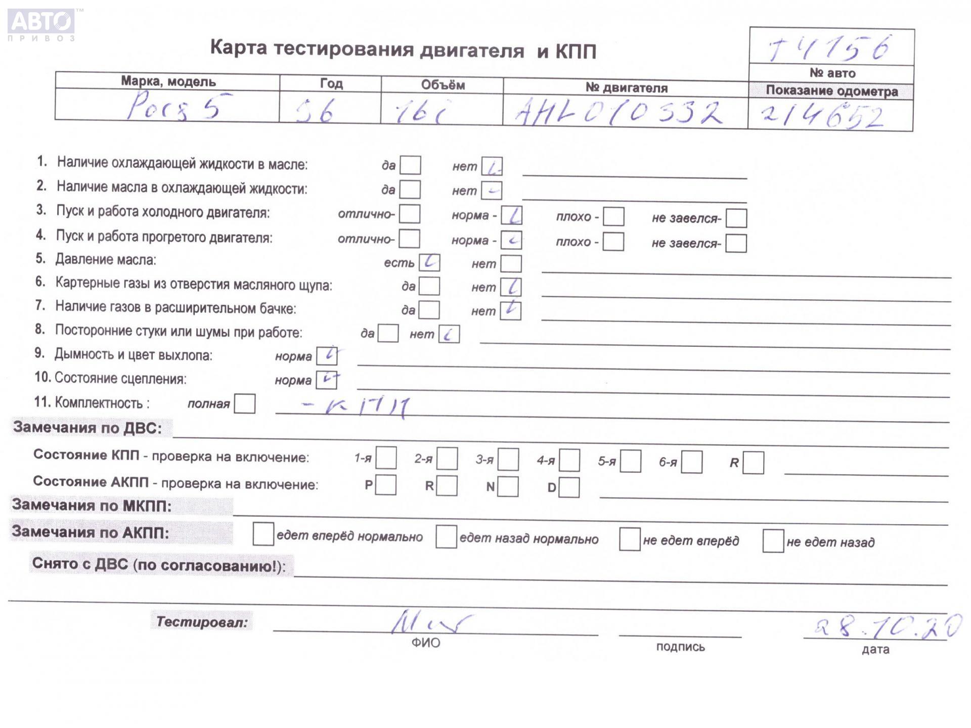| Автомобиль / VIN: | T4156 WVWZZZ3BZVE027063 |