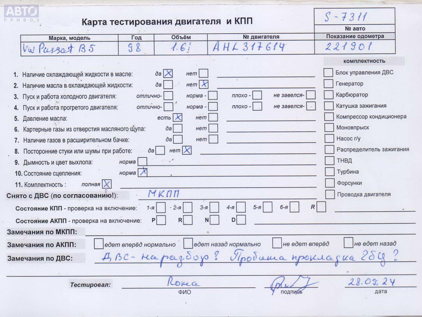 | Марка / Модель / Год: | Volkswagen Passat B5 1998 |