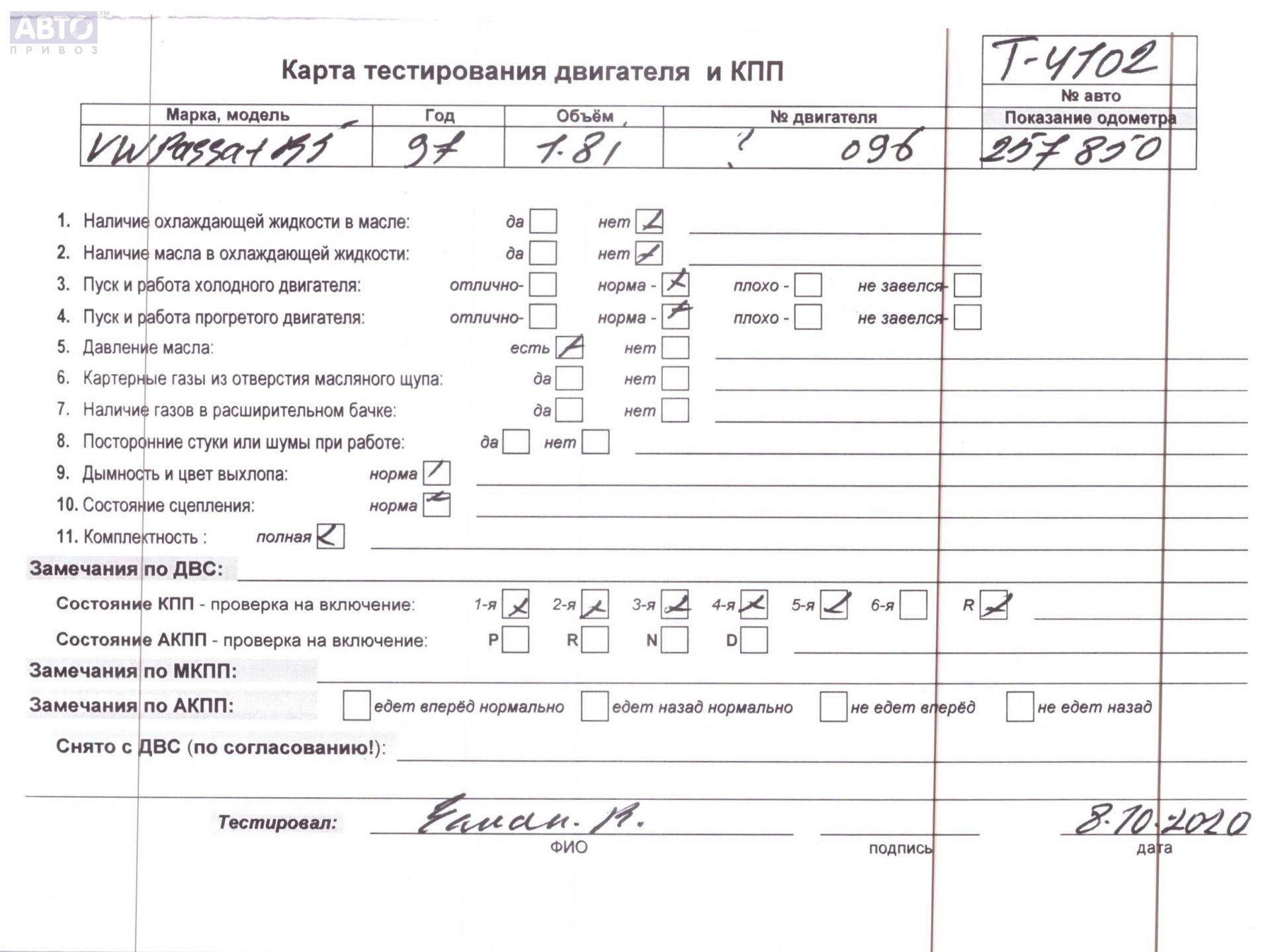 | Автомобиль / VIN: | T4102 WVWZZZ3BZYE017607 |