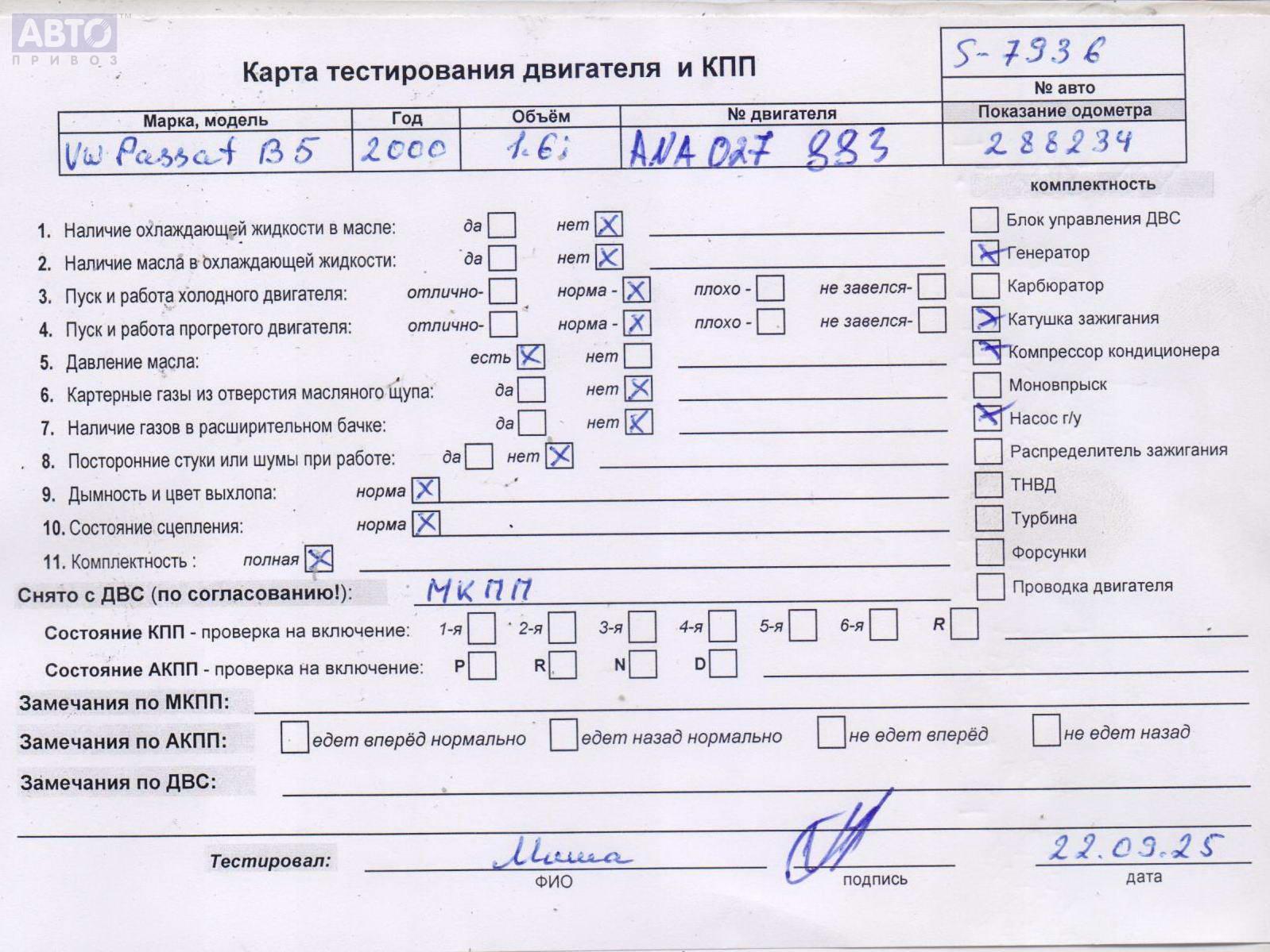 | Марка / Модель / Год: | Volkswagen Passat B5 2000 |