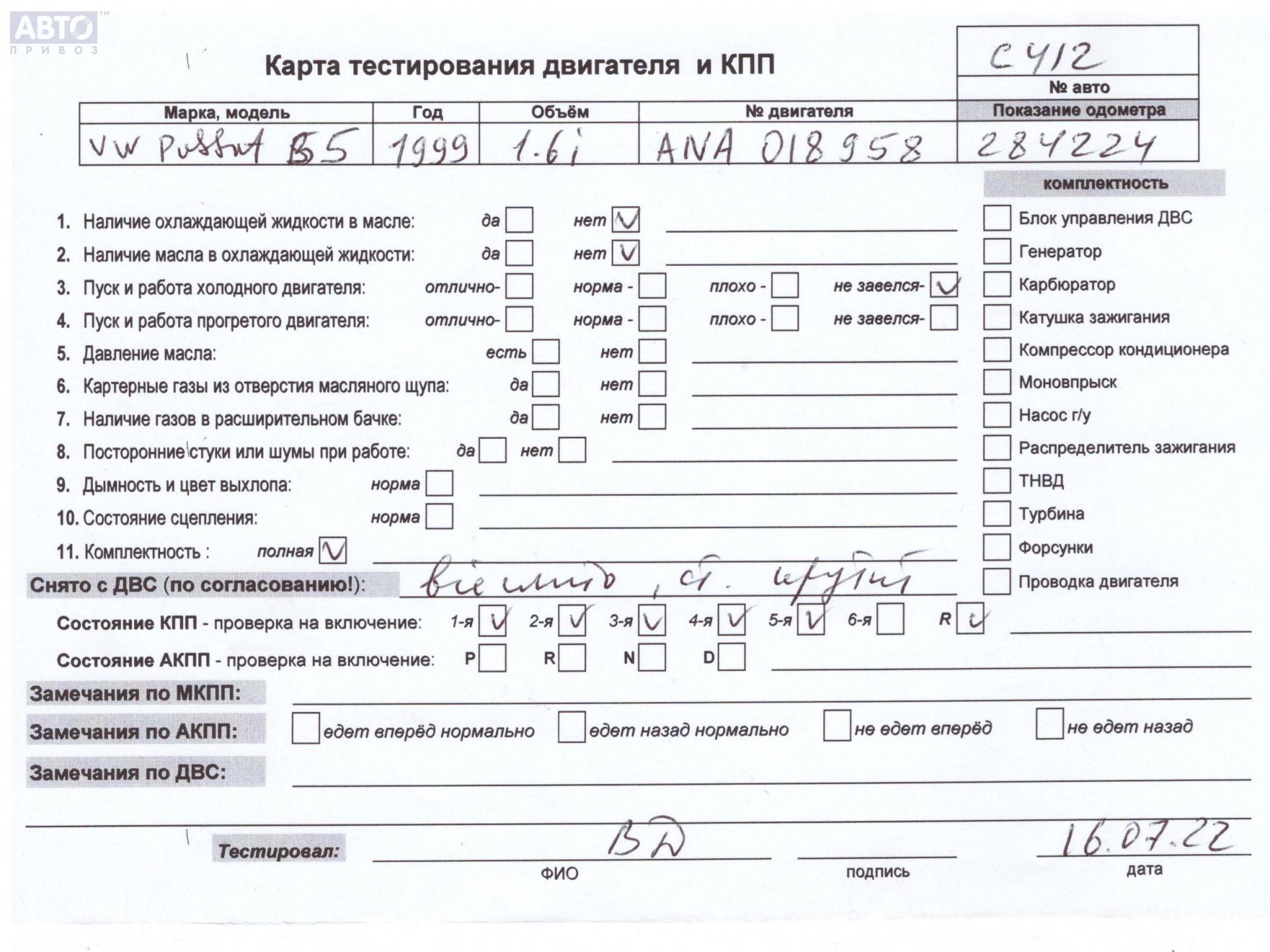 | Марка / Модель / Год: | Volkswagen Passat B5 2000 |