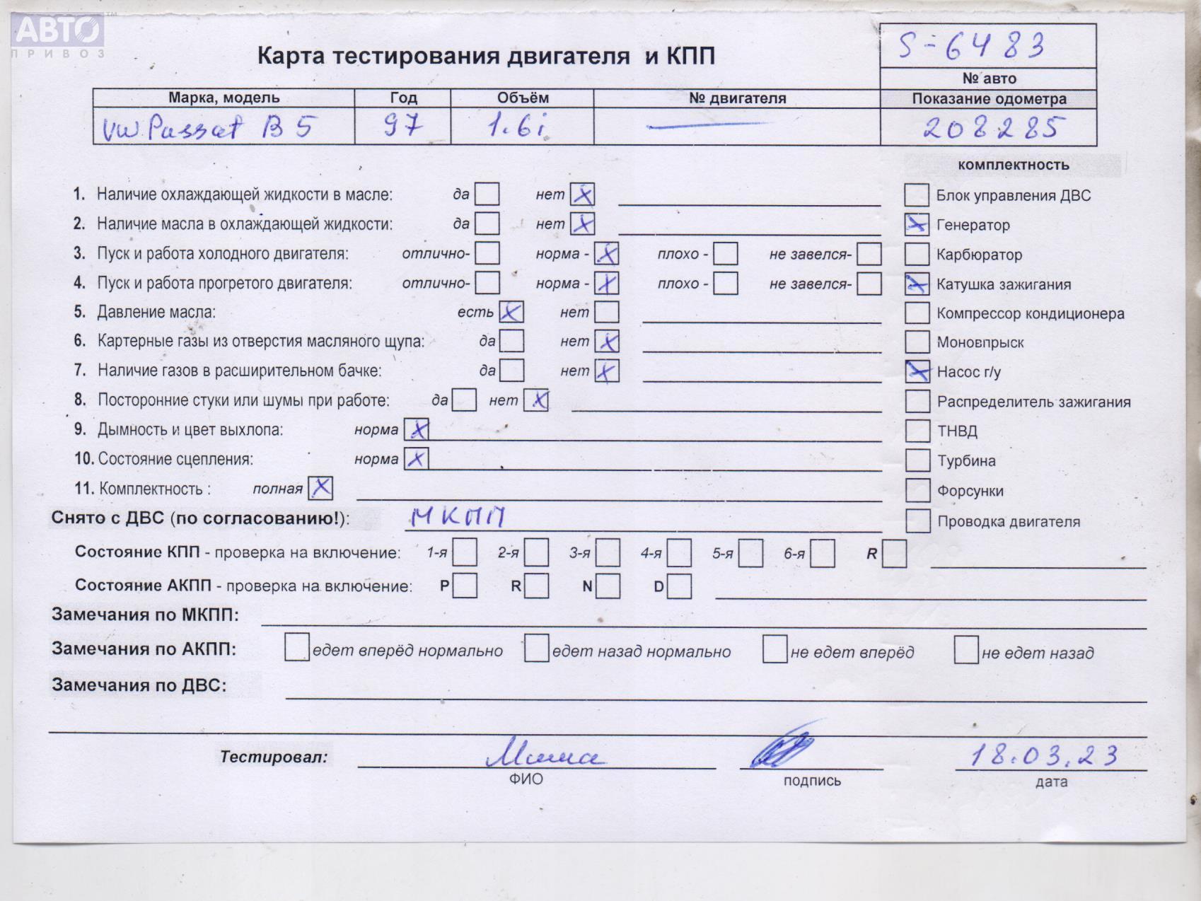 | Марка / Модель / Год: | Volkswagen Passat B5 1997 |