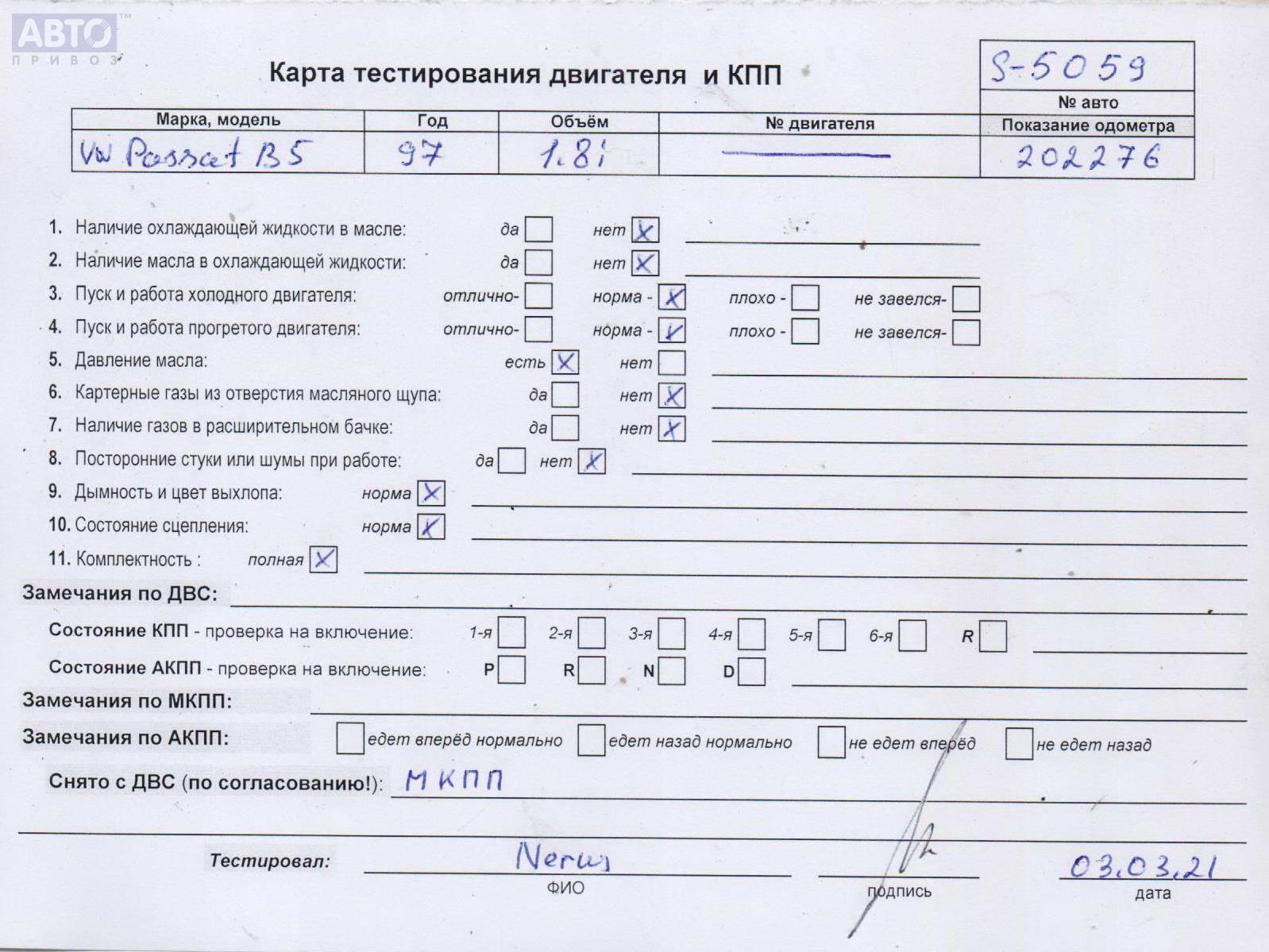| Марка / Модель / Год: | Volkswagen Passat B5 1997 |