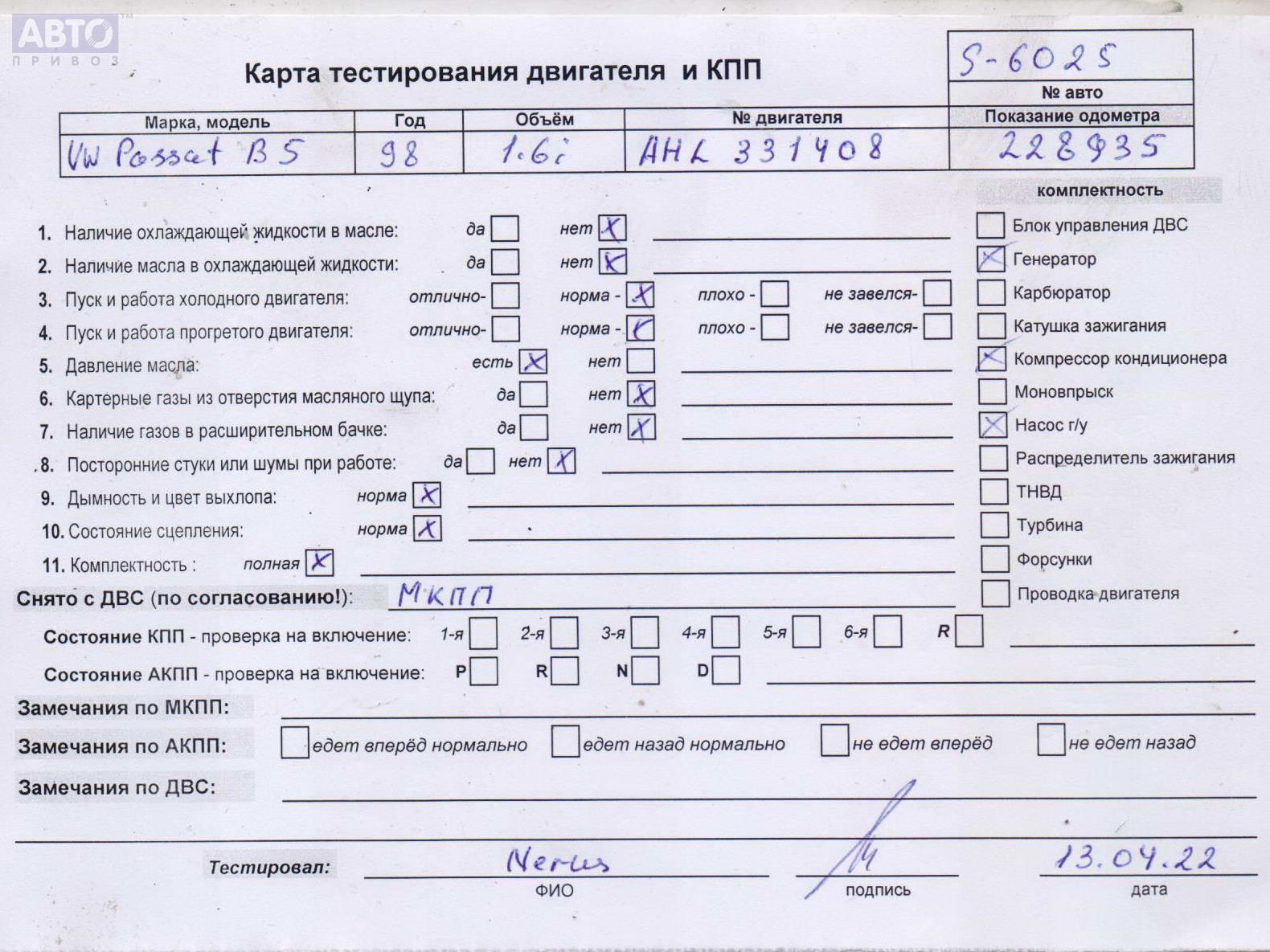 | Марка / Модель / Год: | Volkswagen Passat B5 1998 |