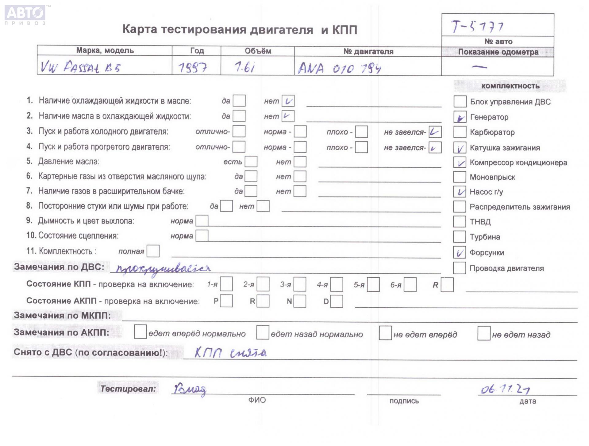 | Марка / Модель / Год: | Volkswagen Passat B5 1999 |