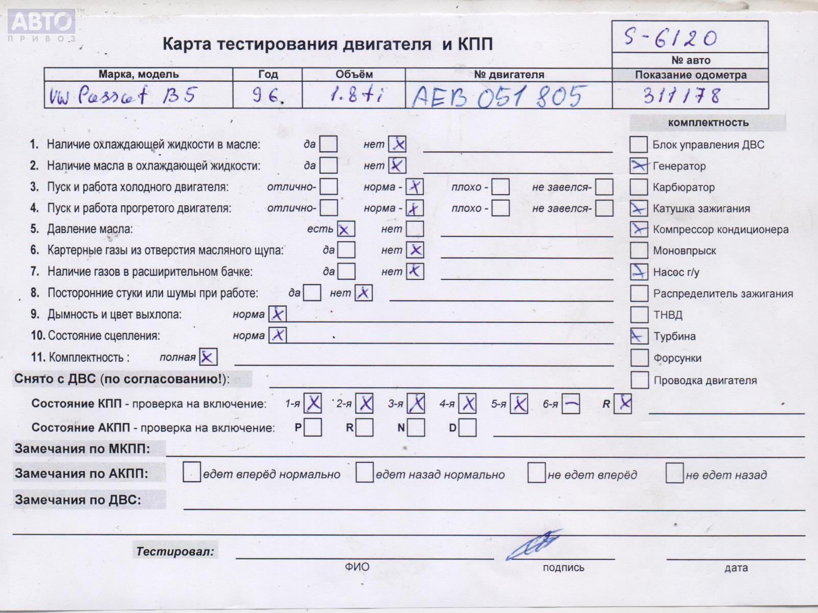 | Марка / Модель / Год: | Volkswagen Passat B5 1996 |