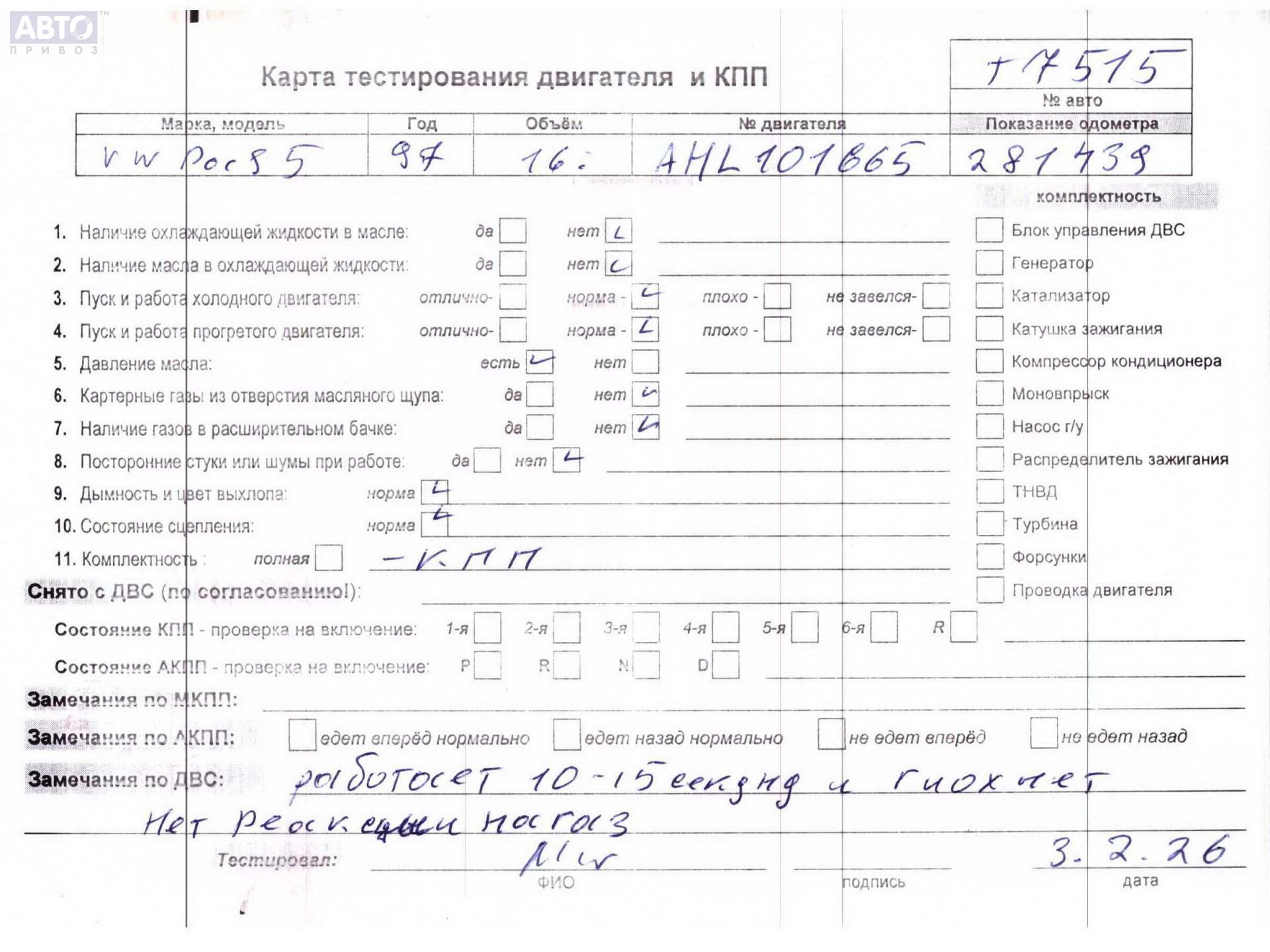 | Марка / Модель / Год: | Volkswagen Passat B5 1997 |